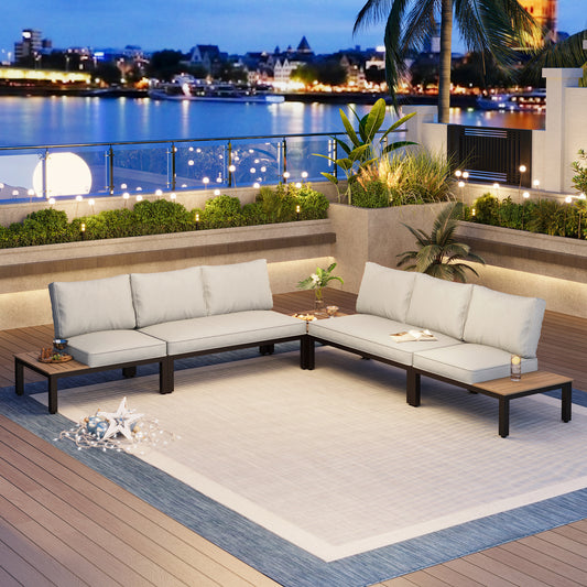 Captiva Designs Outdoor Off-white Conversation Set with Sectional Sofa & Coffee Table & Removable Cushion