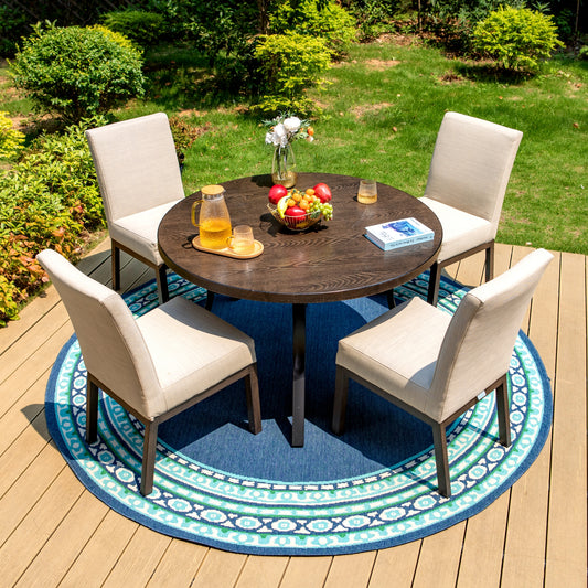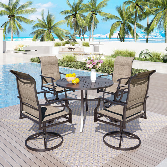 Captiva Designs 5pc Outdoor Slat-top Steel Dining Table & Grayish Bown Padded Sling Chairs
