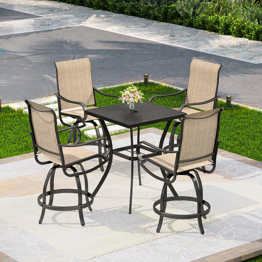 Captiva Designs 5pc Outdoor Patio Steel Bar Table & Sling High Bar Swivel Stools