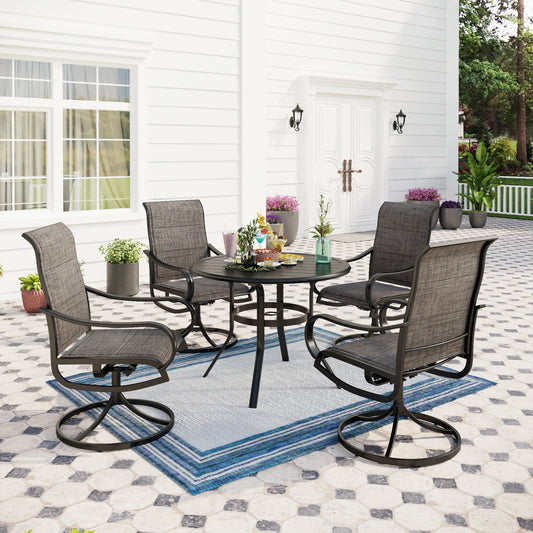 Captiva Designs 5pc Outdoor Wood-look Square Dining Steel Table & Swivel Sling Metal Chairs
