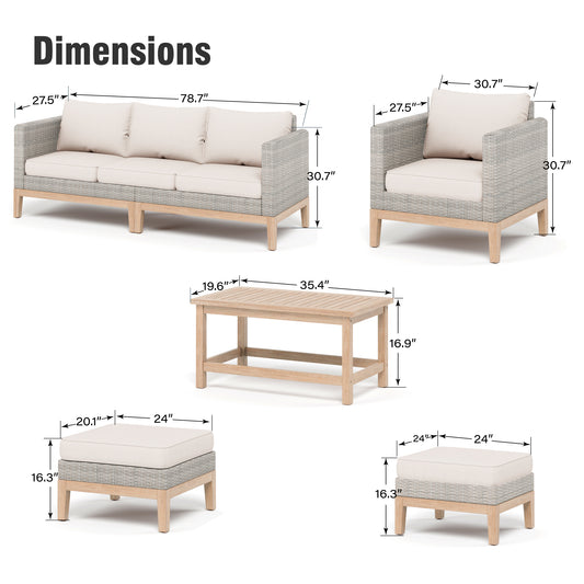 Captiva Designs 5PC Oversized Patio Outdoor Wicker Furniture Conversation Sofa Set with Ottomans for Garden Yard Porch