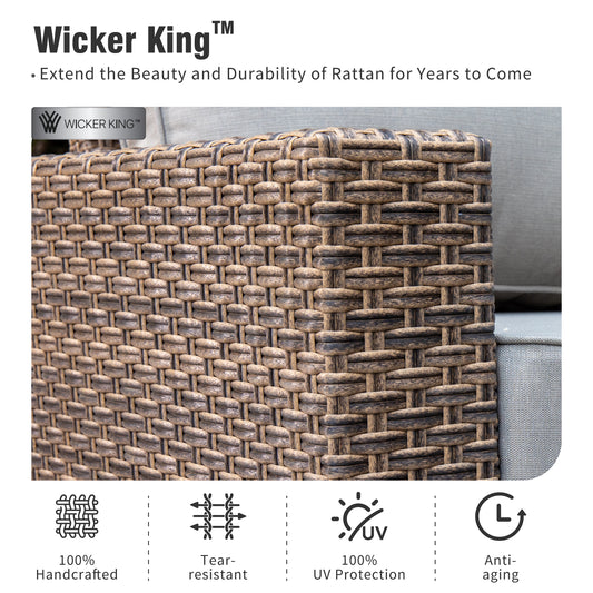 Captiva Designs 6PC Wicker Outdoor Patio Conversation Set with swivel single sofa for Backyard Deck Poolside