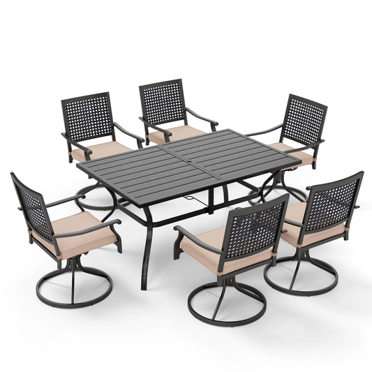 Captiva Designs 7pc Outdoor Patio Dining Slat-top Rectangle Steel Table & Swivel Metal Chairs