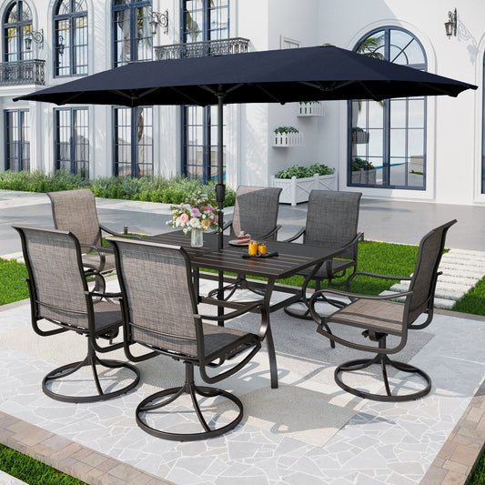 Captiva Designs 7pc Patio Dining Steel Rectangle Table & Textilene 360 Degree Swivel Chairs