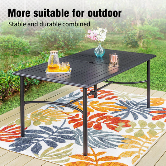 Captiva Designs 7pc Patio Dining Slat-top Expandable Rectangle Steel Table & Stylish Back Metal Chairs
