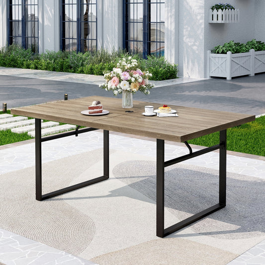 Captiva Designs 7pc Patio Dining Set Wood-look Rectangle Table with Umbrella Hole & Sling Fixed Chairs