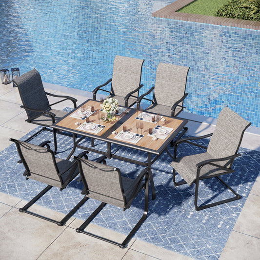 Captiva Designs 7pc Patio Dining Set with Wood-look Rectangle Steel Table & Stylish Back Metal Chairs