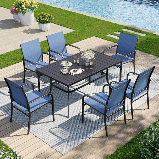 Captiva Designs 7pc Patio Dining Set with Steel Frame Rectangle Table & C-spring Sling Chairs