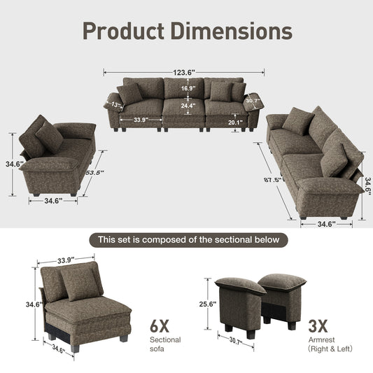 Captiva Designs Cloud Modular Sofa Set 3-Piece Sectional with Loveseat and Armchair Upholstered 6-Seater for Living Room