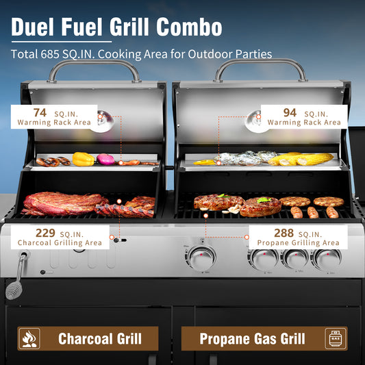Captiva Designs Dual Fuel Propane & Charcoal Grill Combo with Side Burner - 690 sq. in. Cooking Area