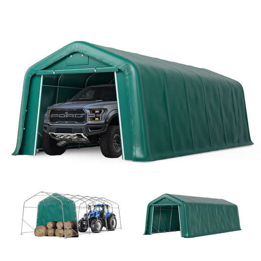 Captiva Designs 11 ft. x 24 ft. x 8.4 ft. Heavy-Duty Portable Garage & Agricultural Shed with Galvanized Frame, Removable Doors and Walls