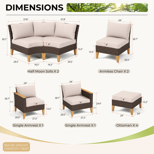 Captiva Designs 12pc Outdoor Wicker Rattan Patio Half-Moon Curved Sectional Sofa Set with Cushioned Ottoman