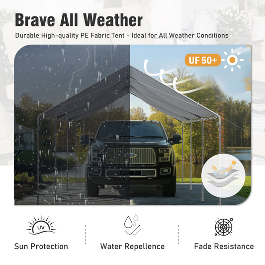 Captiva Designs 10’ x 20’ Heavy Duty Metal Carport with Galvanized Steel Roof for Vehicles, Boats, and Tractors