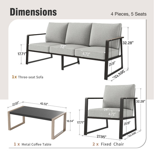 Captiva Designs Modren Outdoor Patio Metal Frame Furniture Conversation Seating Set with Coffee Table