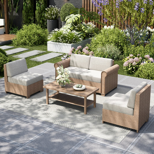 Captiva Designs Luxury Wicker Patio Conversation Sofa Set with Curved Armrests with Cushions