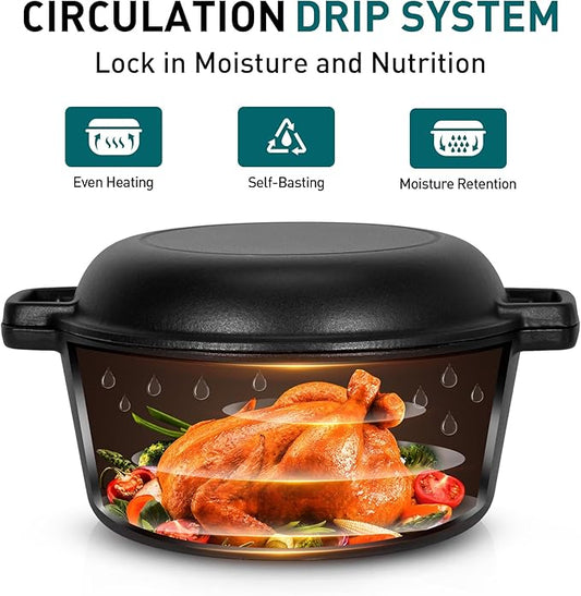 Kitchen Academy 4.7L Enamelled Cast Iron Dutch Oven with Lid - Lid doubles as a 26 cm Cast Iron Grill Pan, Non-Stick, Oven Safe, Oven Safe up to 260°C, Sturdy Dutch Oven