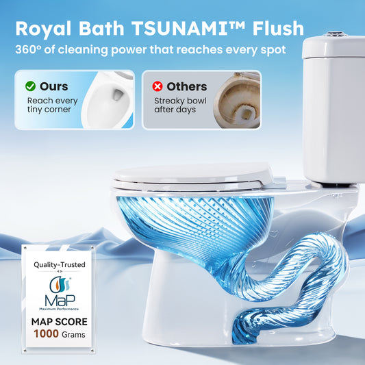 Royal Bath 360° TSUNAMI Flush Two-piece Toilet: 17.3" ADA Height, Nano Self-Cleaning, WaterSense/MAP/CUPC Certified, 0.93/1.27 Gal Dual Flush, Elongated Bowl & Soft-Close Seat,12" Rough-In