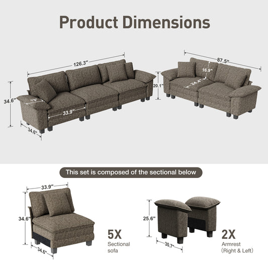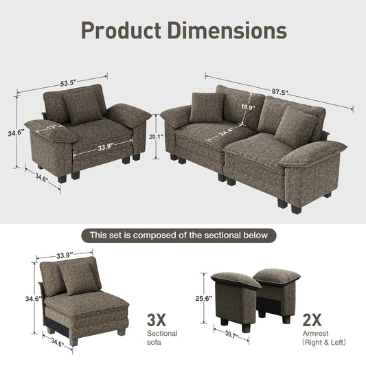 Captiva Designs 2-Piece Cloud Modular Sectional Sofa Set, 5-Seater Couch for Living Room