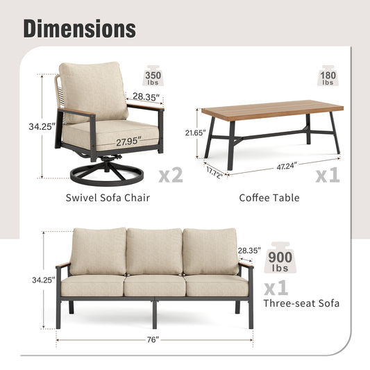 Captiva Designs 4pc Extra Large Metal Outdoor Patio Fire Pit Set with Swivel Pattern-back Chairs
