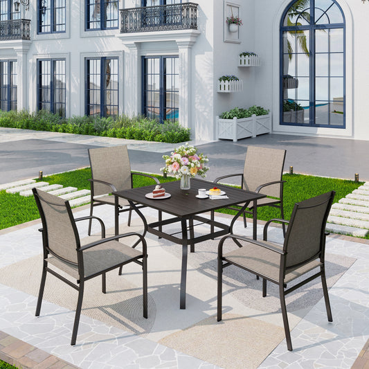 Captiva Designs 4pc Metal Patio Outdoor Conversation Fire Pit Set with Grid-back Armchairs for Garden, Poolside, Backyard