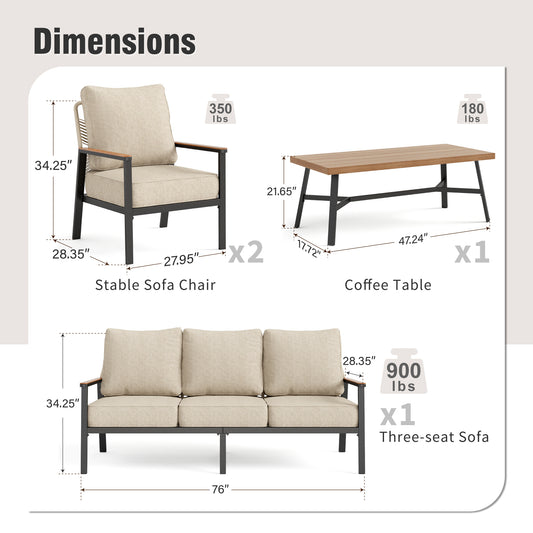 Captiva Designs 4pc Extra Large Metal Patio Outdoor Conversation Set with Armchairs for Garden, Poolside, Backyard