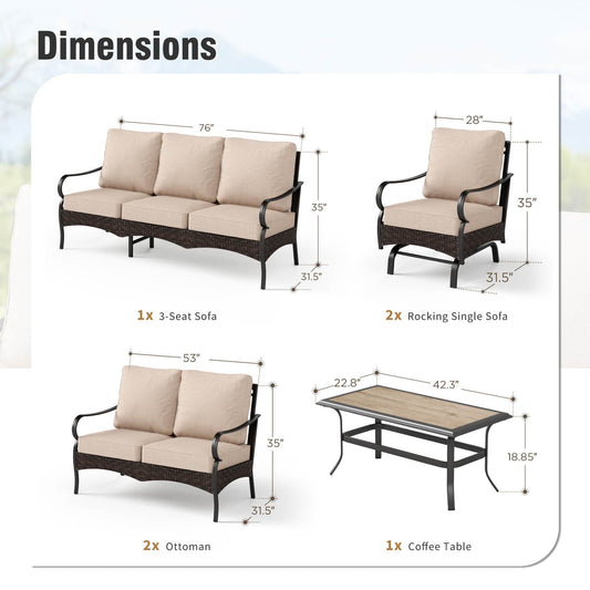 Captiva Designs 5 PCS Patio Furniture Conversation Set with Rocking Armchairs for Garden Porch Backyard