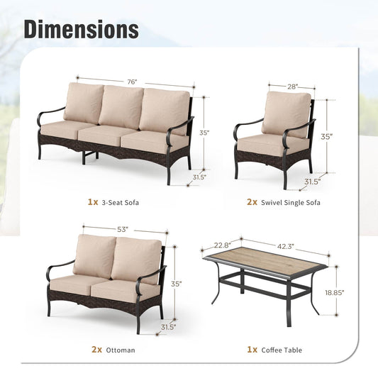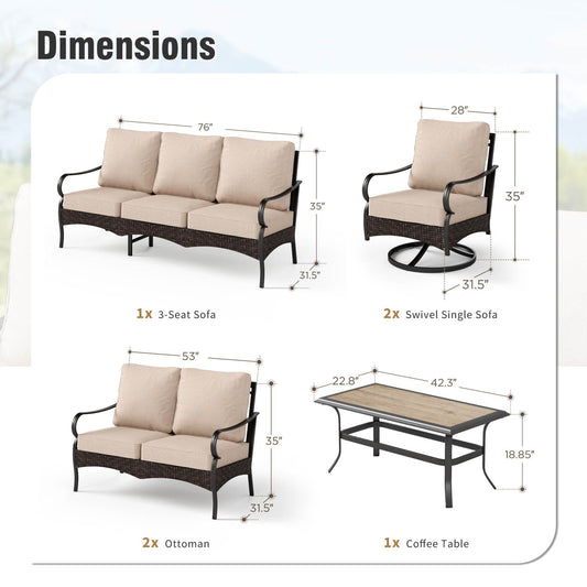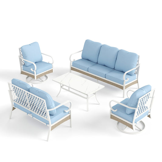 Captiva Designs 5pc Extra Large Metal and Rattan Outdoor Patio Conversation Set with Swivel Grid-back Chairs and Loveseat