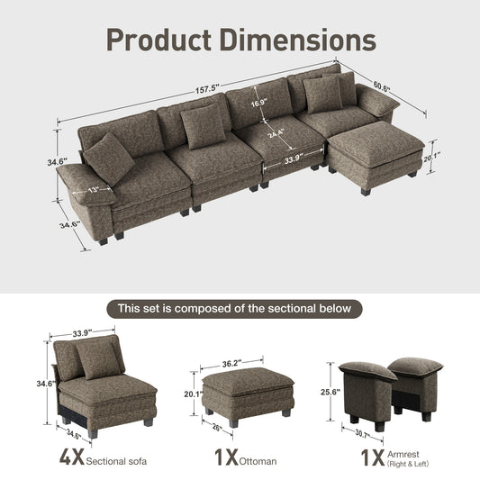 Captiva Designs 5-Seater Cloud Modular Sectional Sofa, 157.5" L-Shaped Couch with Movable Ottoman