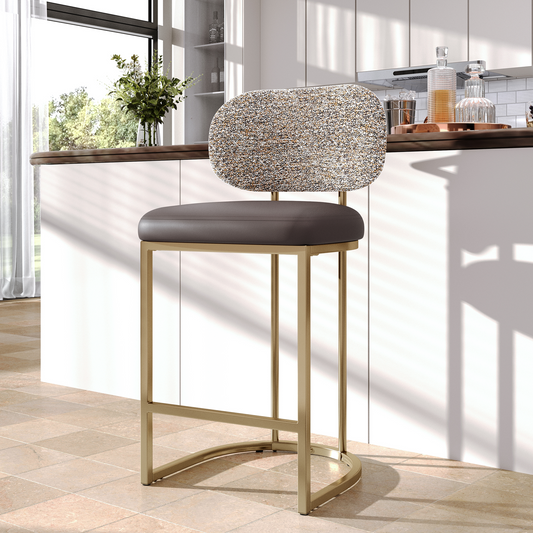 Captiva Designs 24.8 inch Counter Height Bar Stool with Large Chenille Back & PU Leather Seat & Footrest & Adjustable Foot Pad & Sturdy Steel Frame