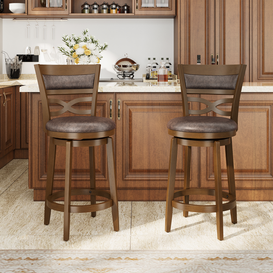 Captiva Designs Counter & Bar Height Swivel Bar Stools with Faux Leather Upholstered Seat & Rubberwood Frame & Wrap-Around Footrest