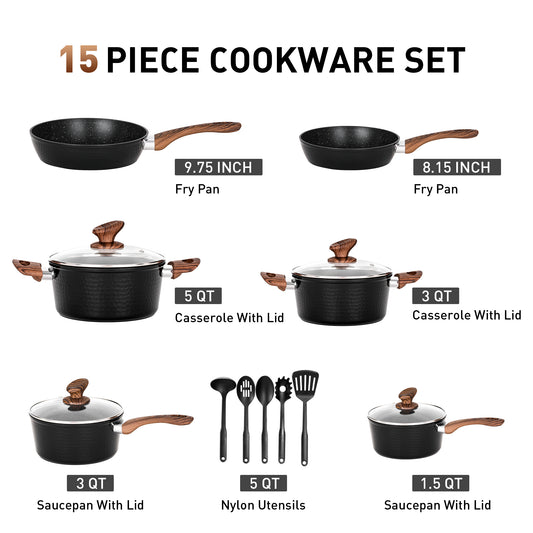 Captiva Designs Non-Toxic Nonstick Granite Cookware Set, Induction Compatible, Stay-Cool Handle, Lightweight and Stackable Design
