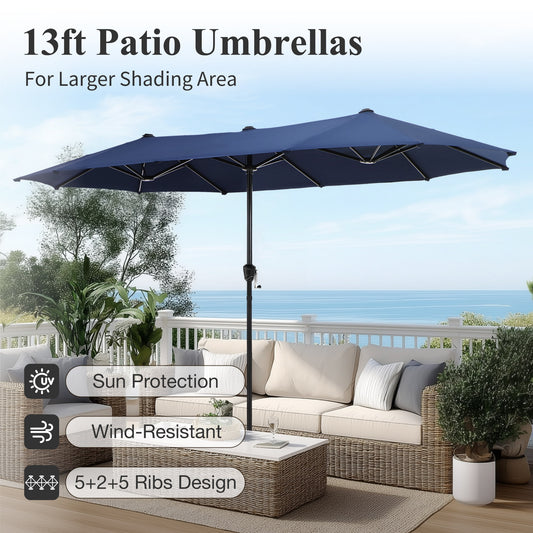 Captiva Designs 13ft Double-Sided Rectangular Patio Umbrella-Navy Blue