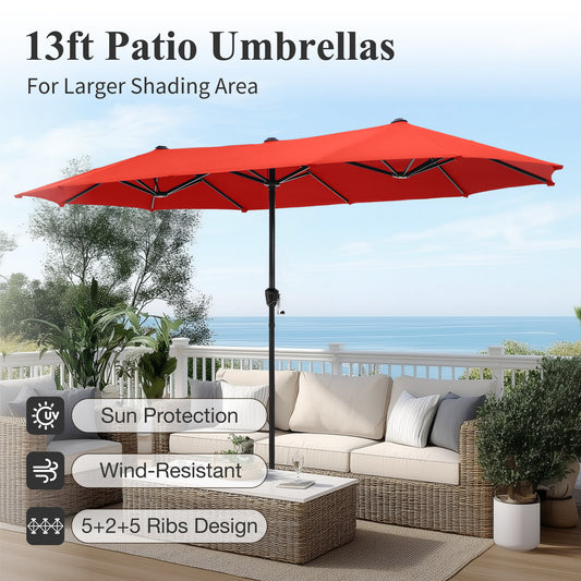 Captiva Designs 13ft Double-Sided Rectangular Patio Umbrella-Red