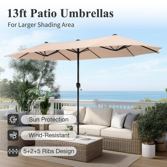 Captiva Designs 13ft Double-Sided Rectangular Patio Umbrella-Beige
