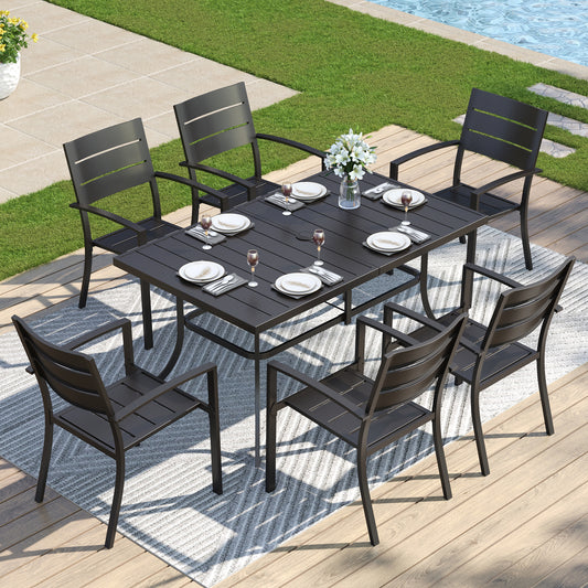 Captiva Designs 7pc Patio Dining Slat-top Expandable Rectangle Steel Table & Stylish Back Metal Chairs