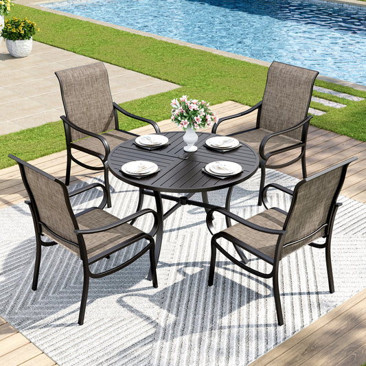 Captiva Designs 5pc Patio Set Steel Frame Dining Table with Umbrella Hole & Breathable Quick-dry Sling Chairs