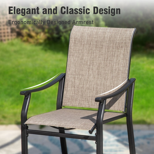 Captiva Designs 9pc Patio Dining Black Steel Rectangle Table & Brown Textilene Fixed Chairs