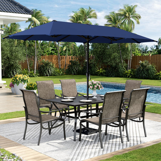 Captiva Designs 8pc Patio Rectangular Steel Dining Table & Breathable Sling Chairs & Market Umbrella
