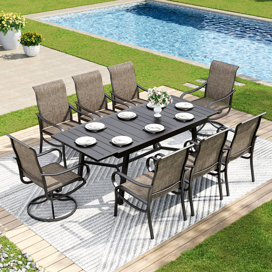Captiva Designs 9pc Outdoor Dining set with Slat-top Metal Table & Breathable Quick-dry Sling Chairs