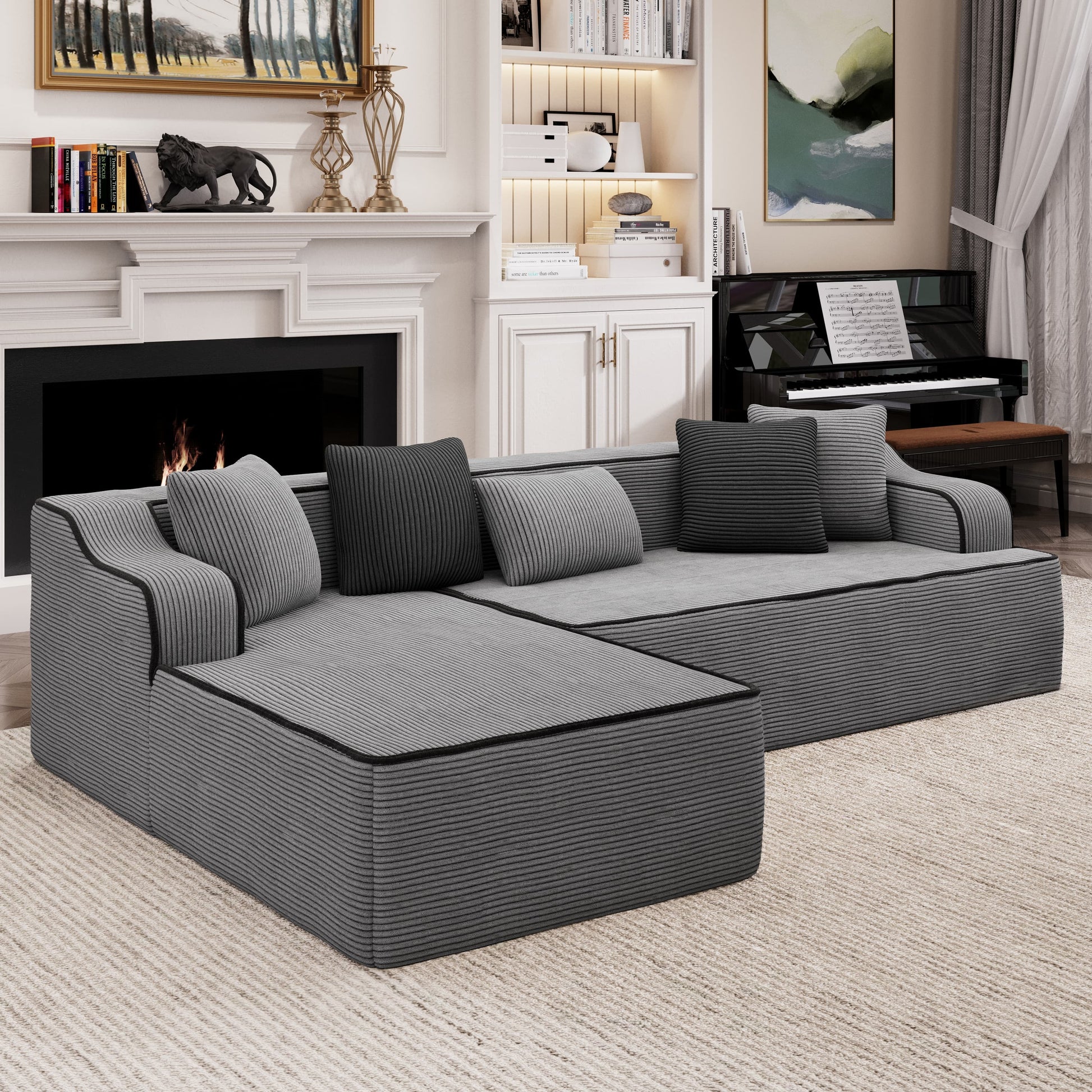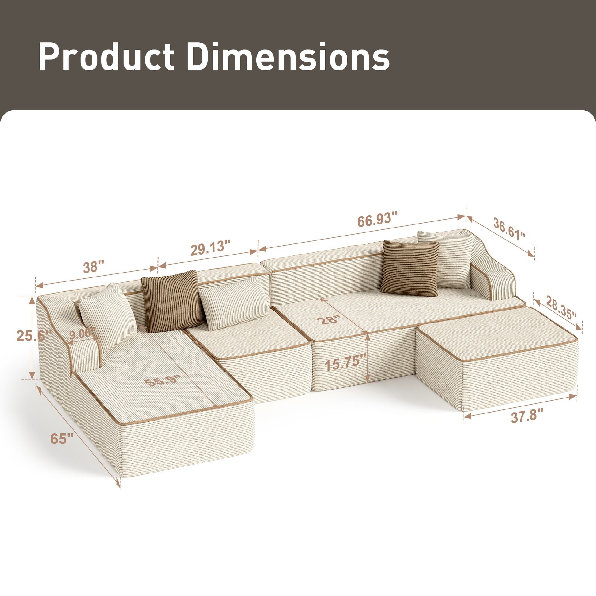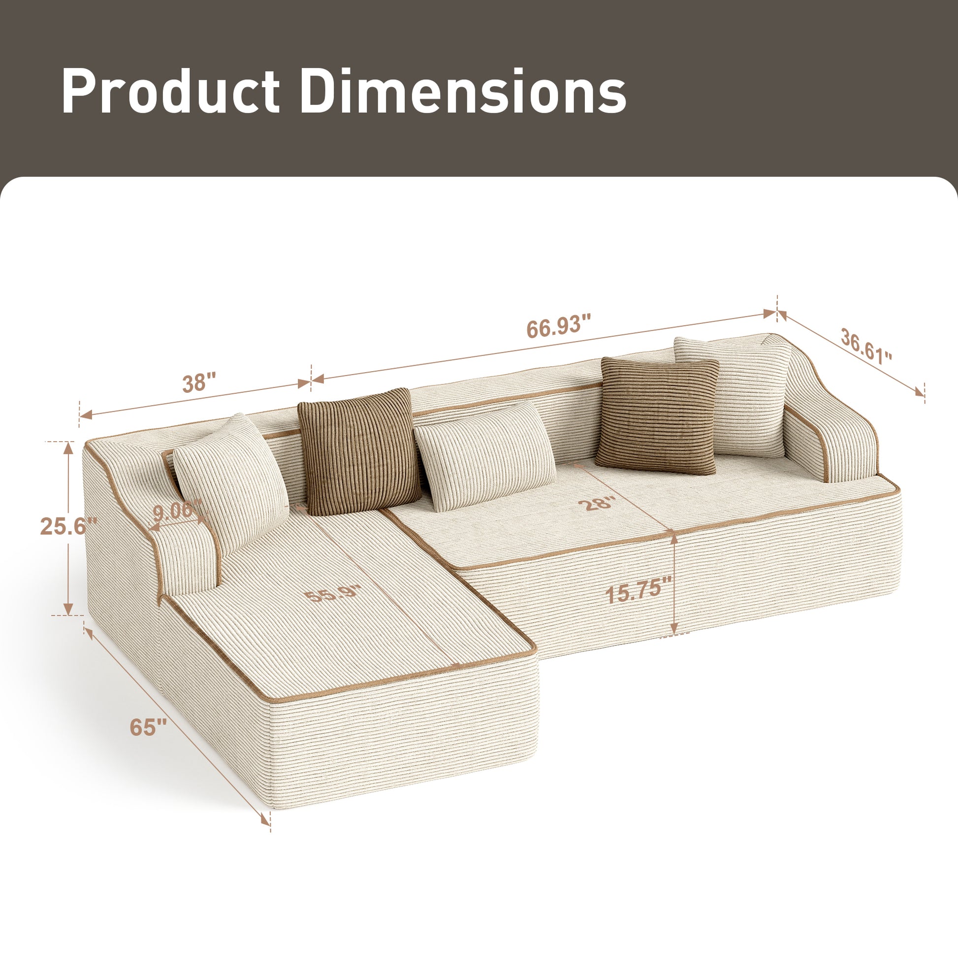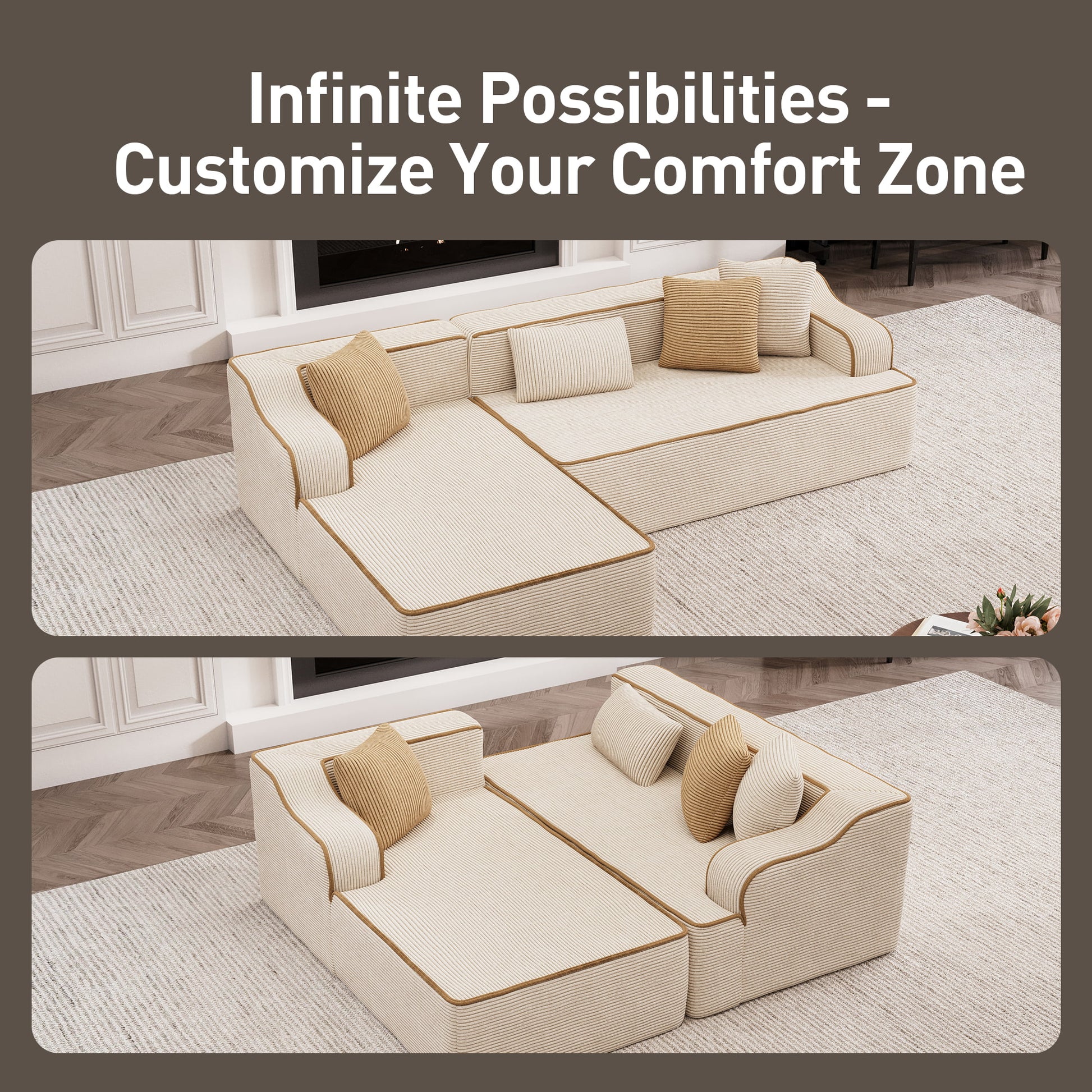 Transform your living space with this 124-inch Captiva Designs L-shaped sectional sofa. Wrapped in soft corduroy upholstery, this modular couch offers cloud-like comfort with deep seating and plush cushions. The versatile configuration includes a 67" sofa, a 65" chaise, and an ottoman for flexible layouts that suit your room. Designed for modern living, it’s easy to set up, durable, and perfect for relaxing, entertaining, or everyday lounging.