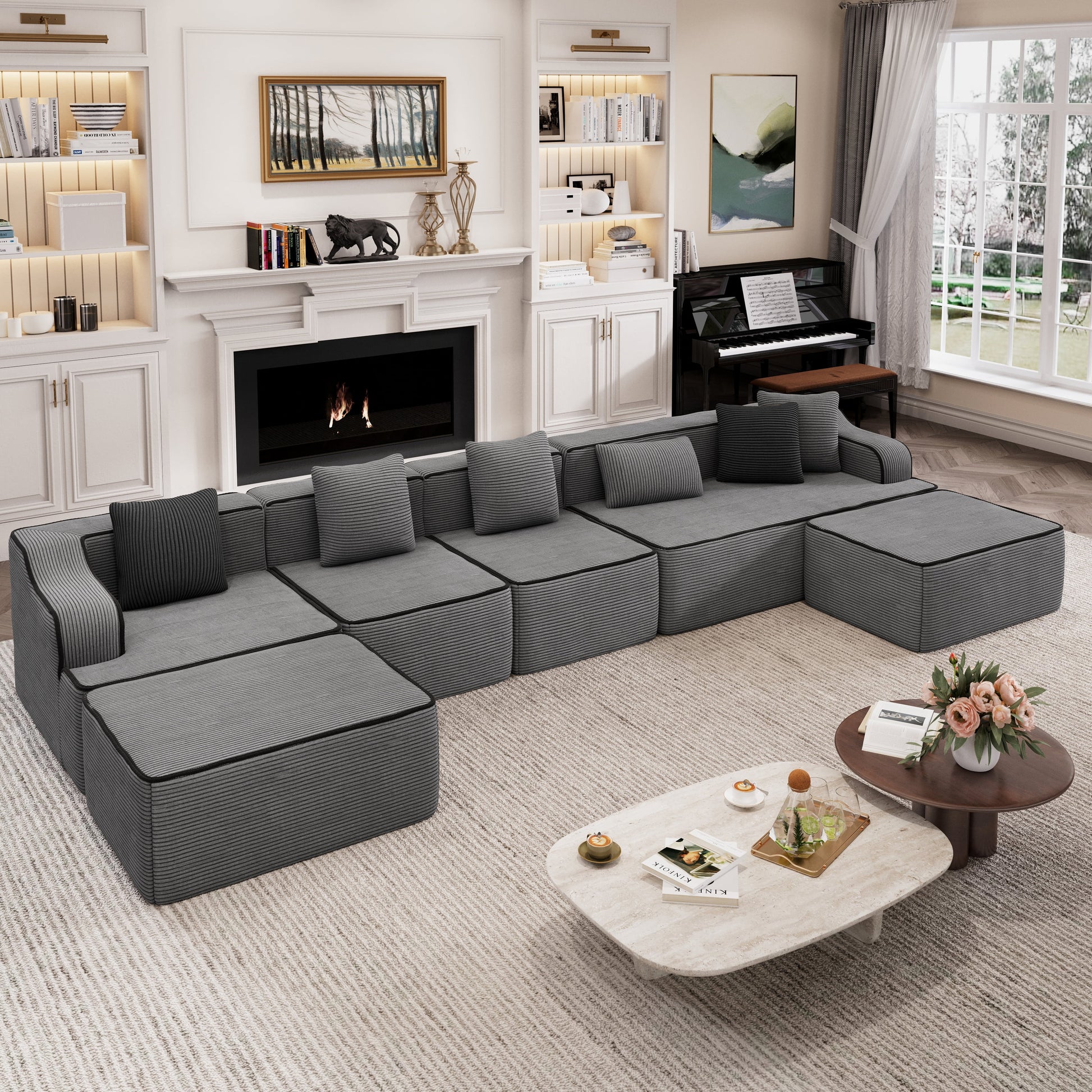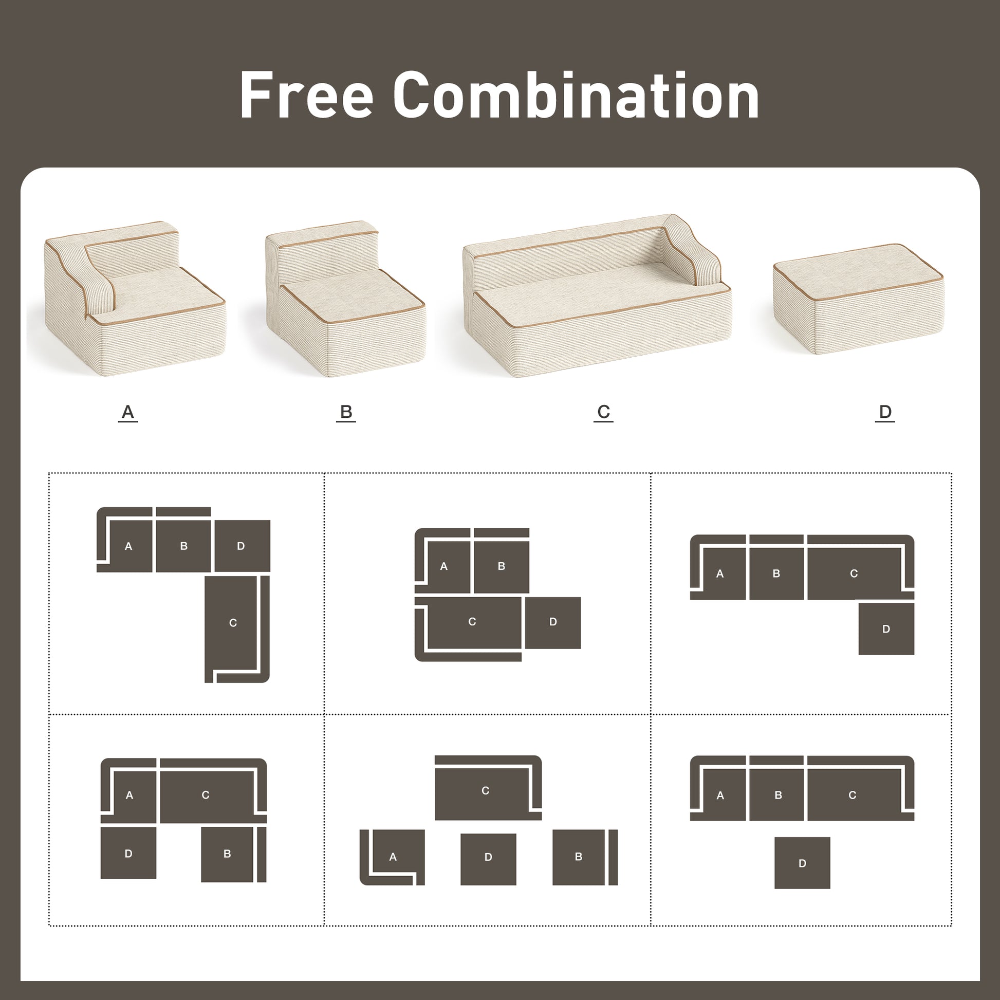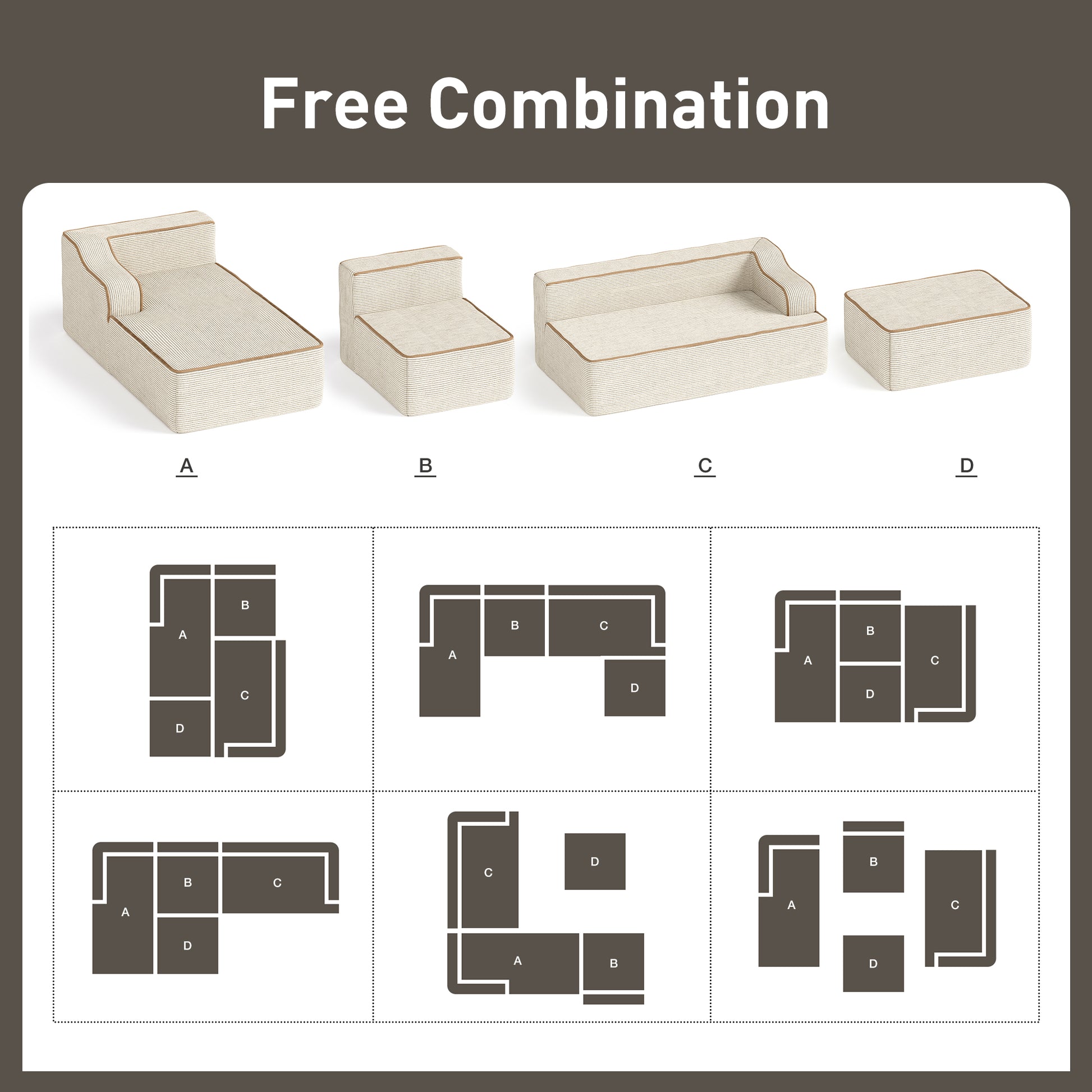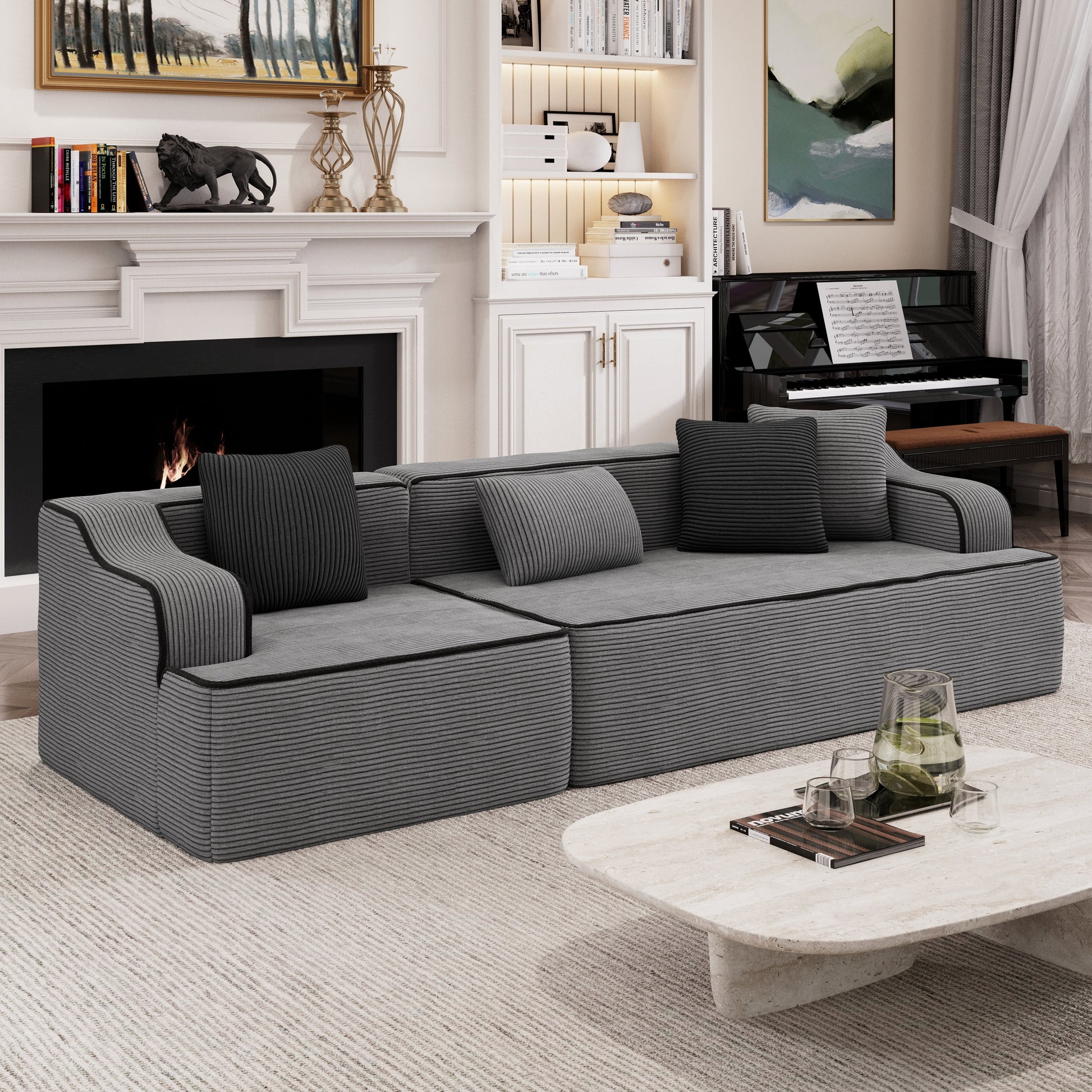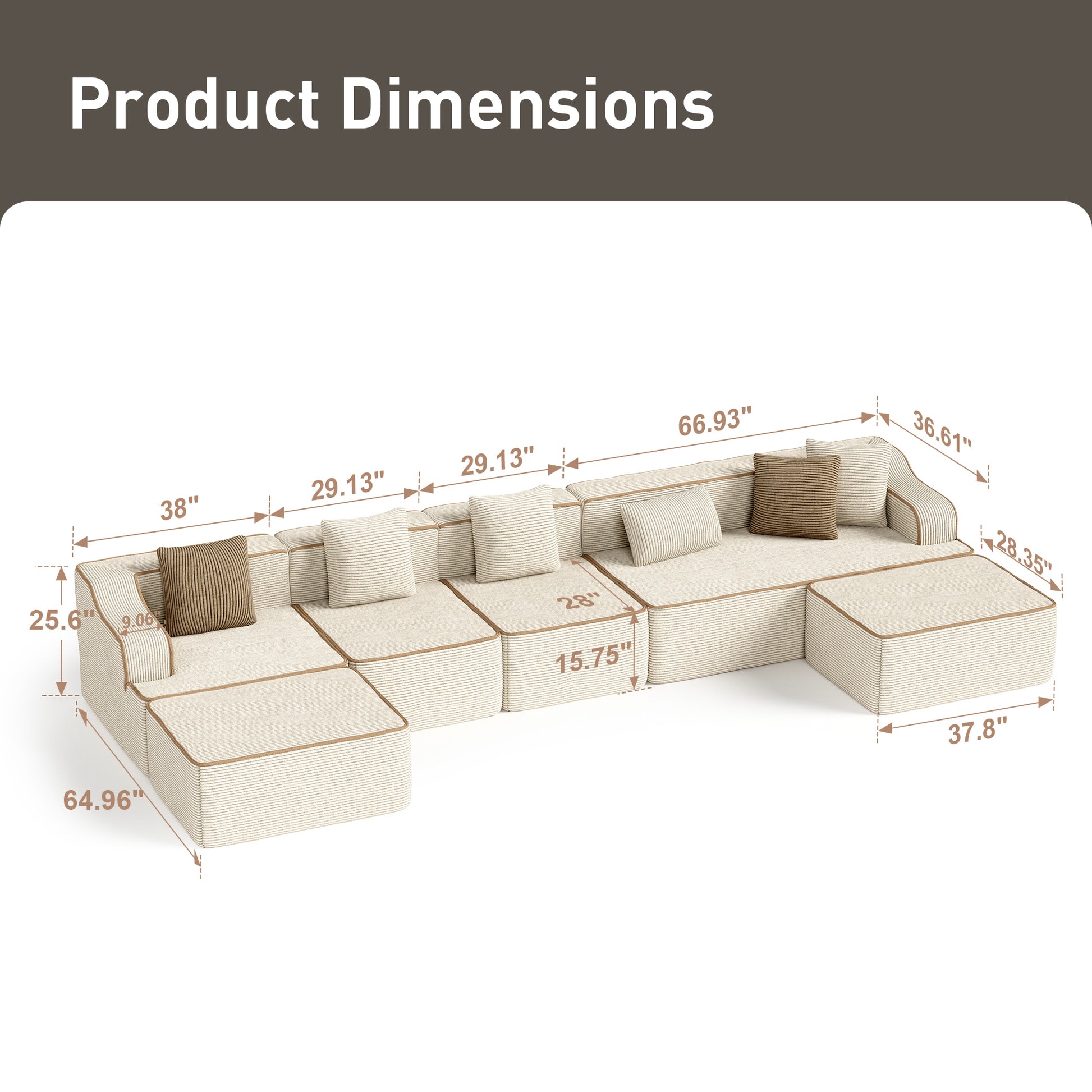 Transform your living space with this 124-inch Captiva Designs L-shaped sectional sofa. Wrapped in soft corduroy upholstery, this modular couch offers cloud-like comfort with deep seating and plush cushions. The versatile configuration includes a 67" sofa, a 65" chaise, and an ottoman for flexible layouts that suit your room. Designed for modern living, it’s easy to set up, durable, and perfect for relaxing, entertaining, or everyday lounging.