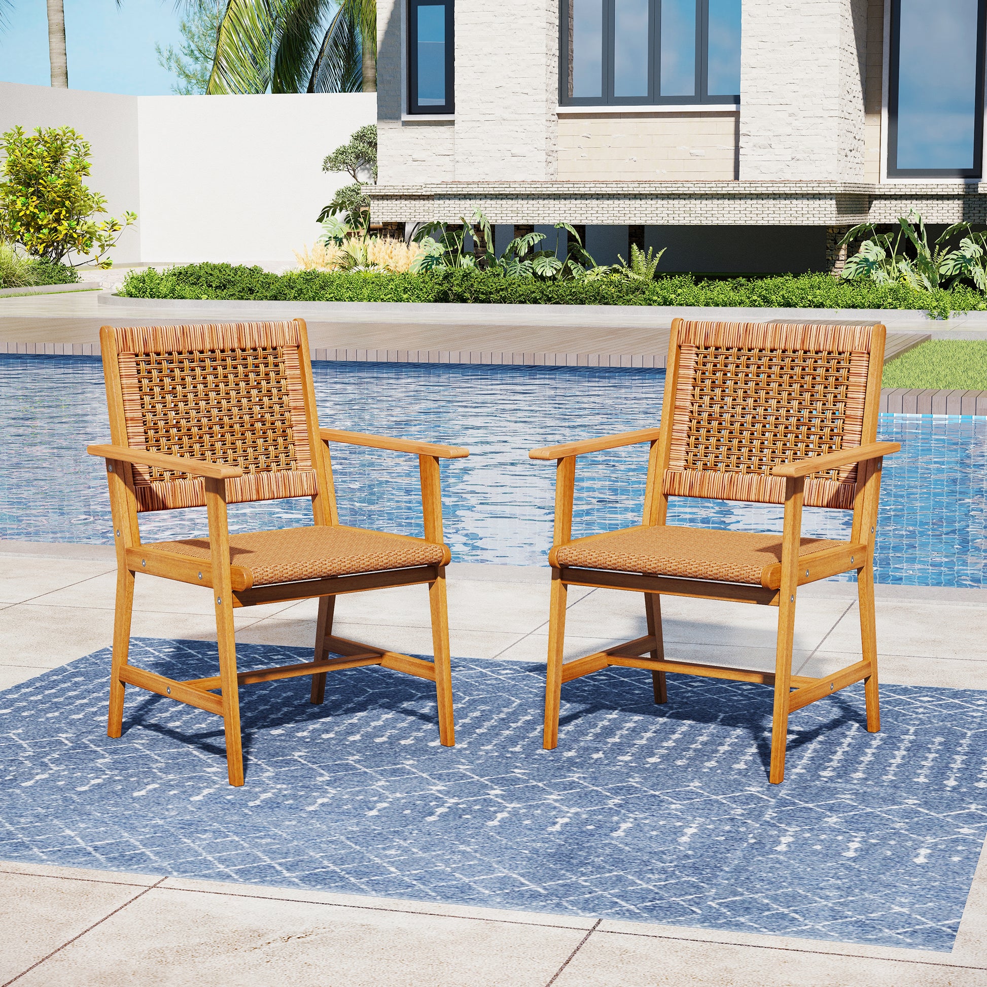Captiva Designs Outdoor Patio Dining Acacia Wood Patio Fixed Chairs with Armrests