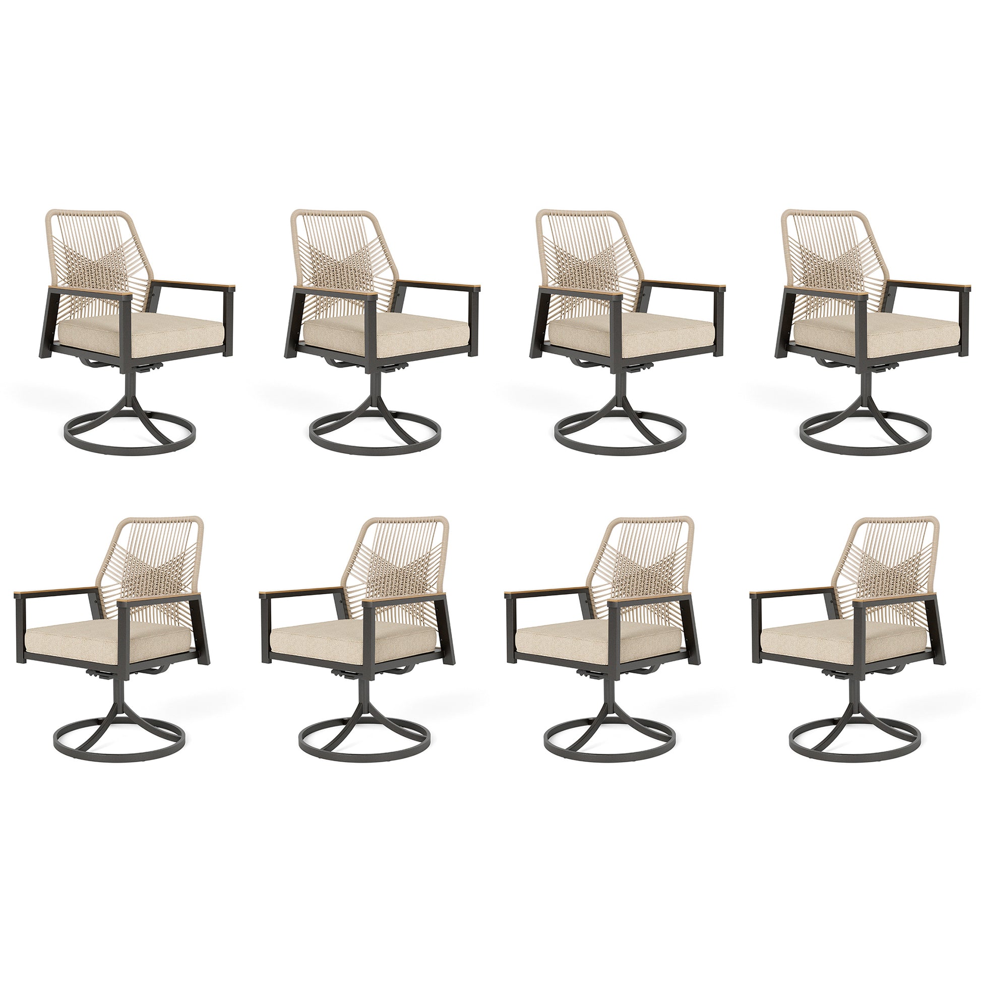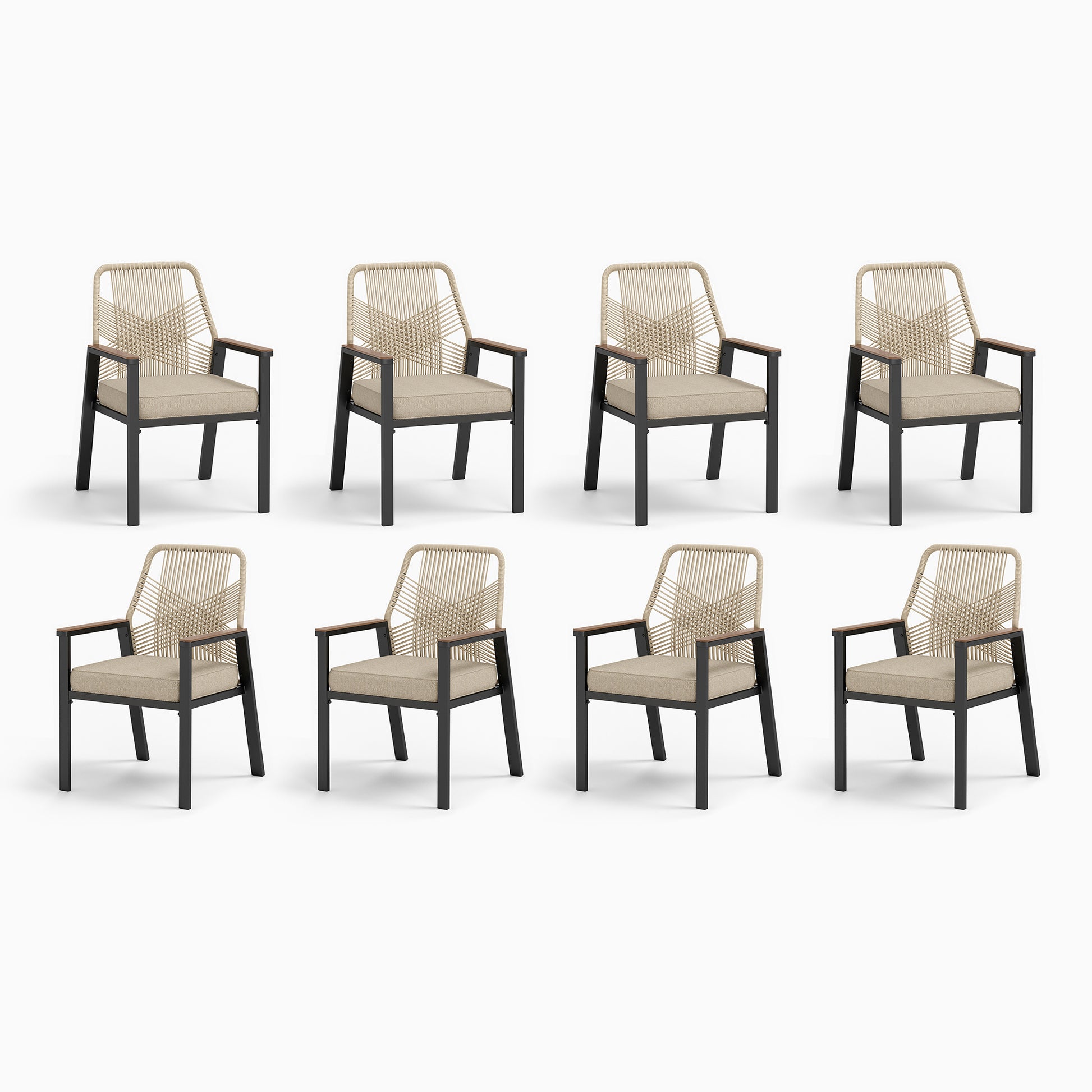 Captiva Designs Outdoor Dining Beige Rattan Chairs with Thick Cushions and Woven Wicker Backs