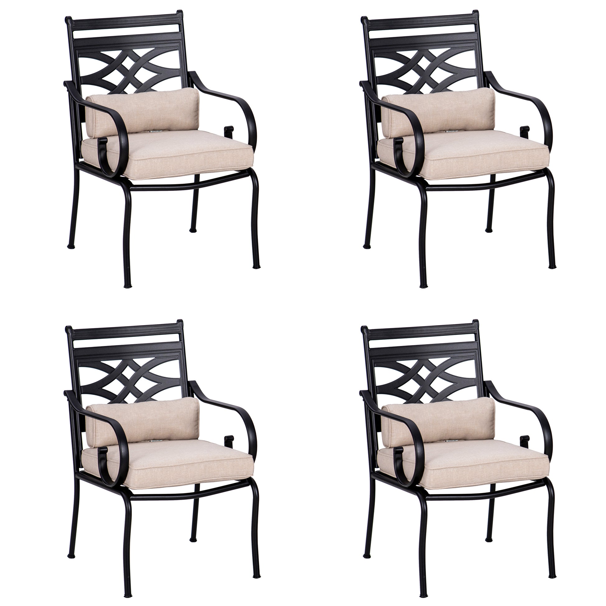 Captiva Designs Outdoor Patio Dining Floral Back Steel Chairs with Thick Seat & Back Cushion