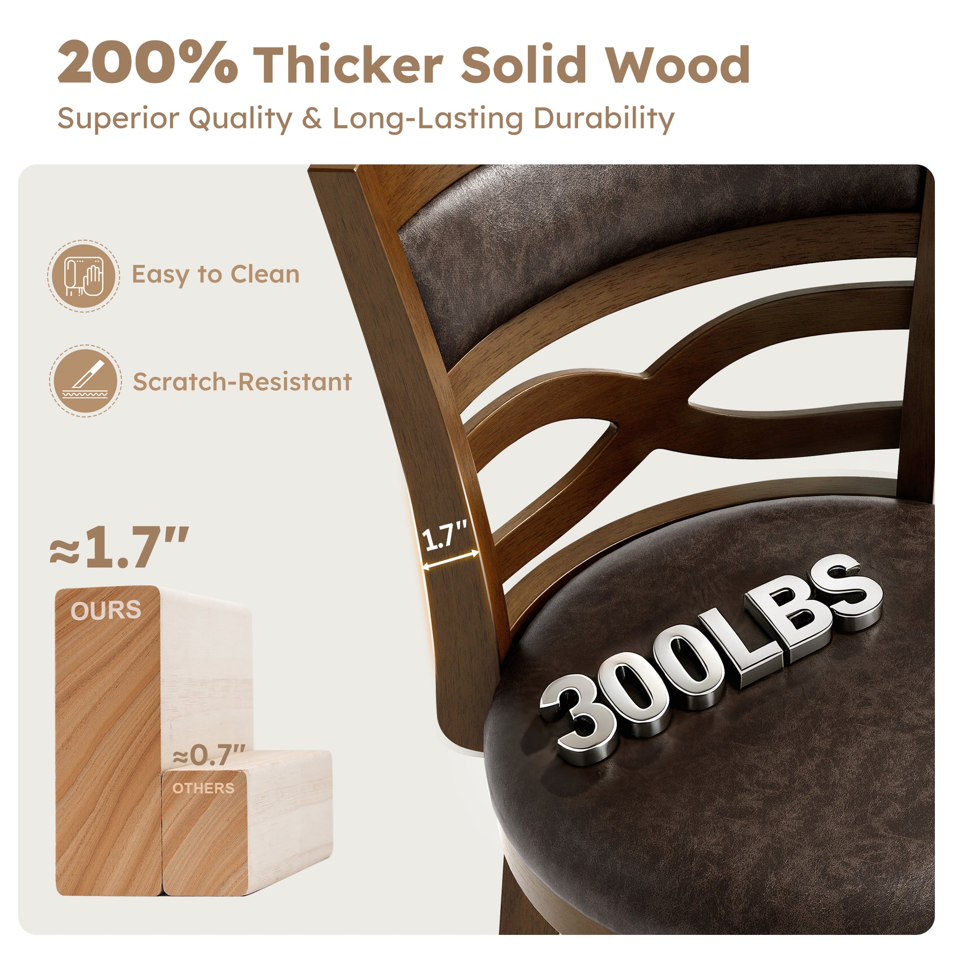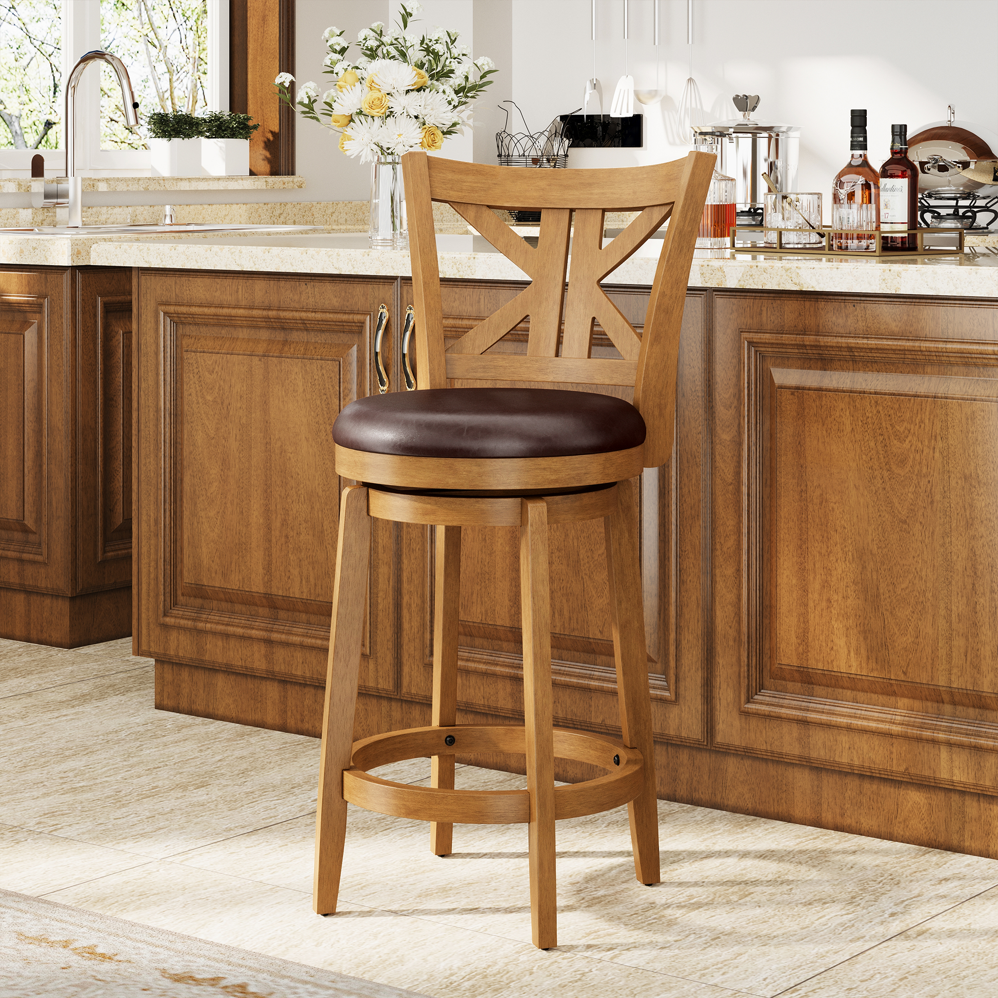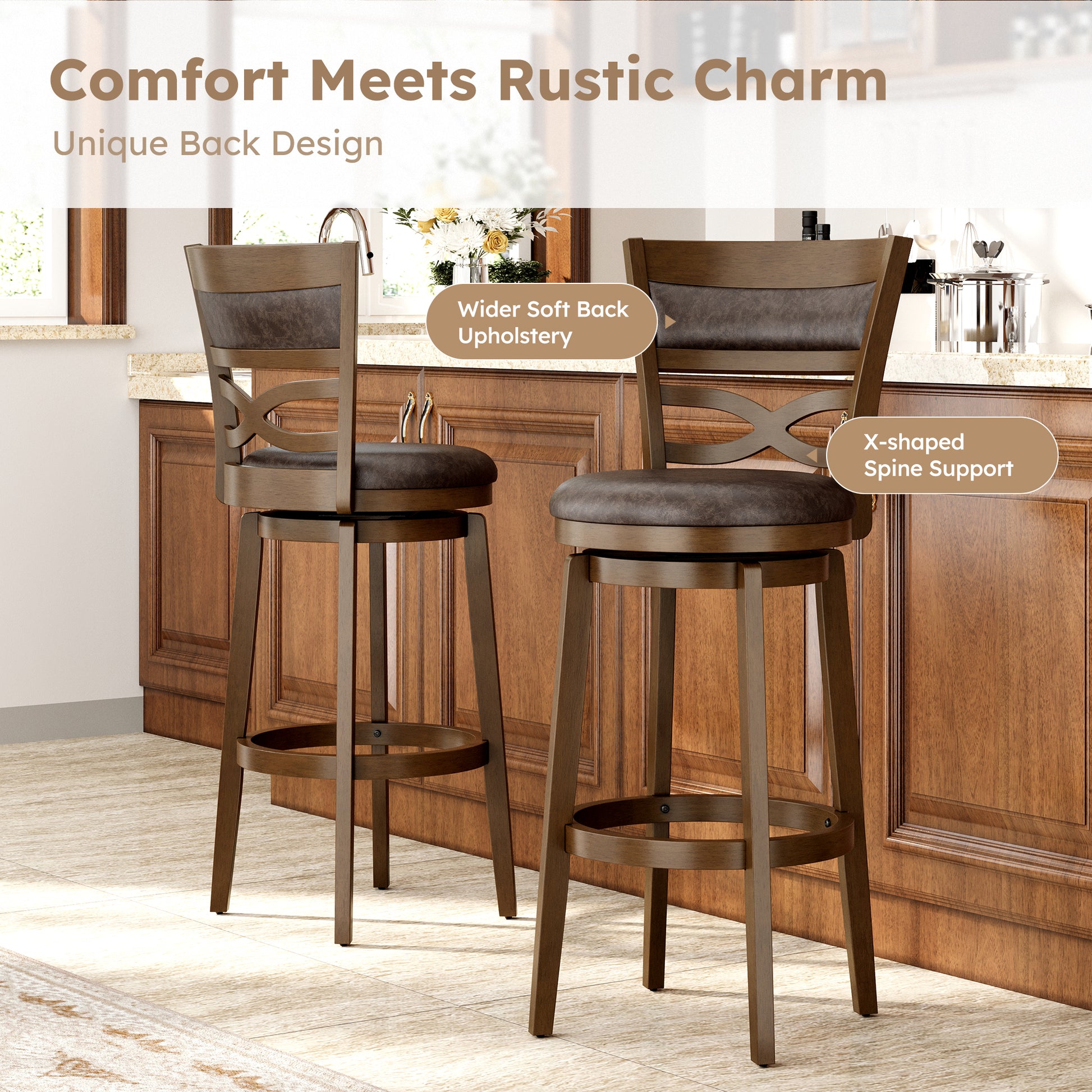 [Captiva Designs] Discover the ultimate comfort with the Captiva Designs swivel bar stool! This stylish stool features an ergonomic curved backrest and soft, layered cushioning made of faux leather and high-resilience sponge, ensuring you feel great all day long. With its smooth 360° swivel base, you can easily move around, making it perfect for chatting with friends or getting things done. Built tough with a solid rubberwood frame, this stool supports up to 300 lbs and has water-resistant faux leather that stands up to spills and stains. You’ll love the helpful footrest that eases leg fatigue, plus non-slip pads that protect your floors. A perfect blend of durability, comfort, and classic design, this stool is an excellent choice for your kitchen, bar, or café—where style meets practicality. Upgrade your space today!