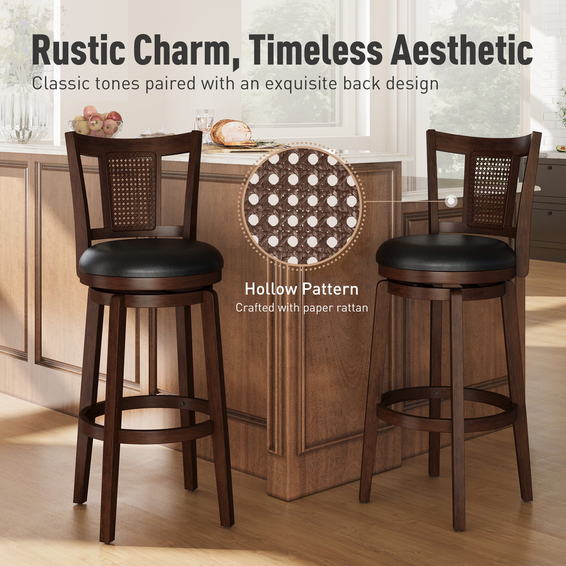 Captiva Designs 30 inch Swivel Bar Stools with Faux Leather Upholstered Seat & Rubberwood Frame & Wrap-Around Footrest
