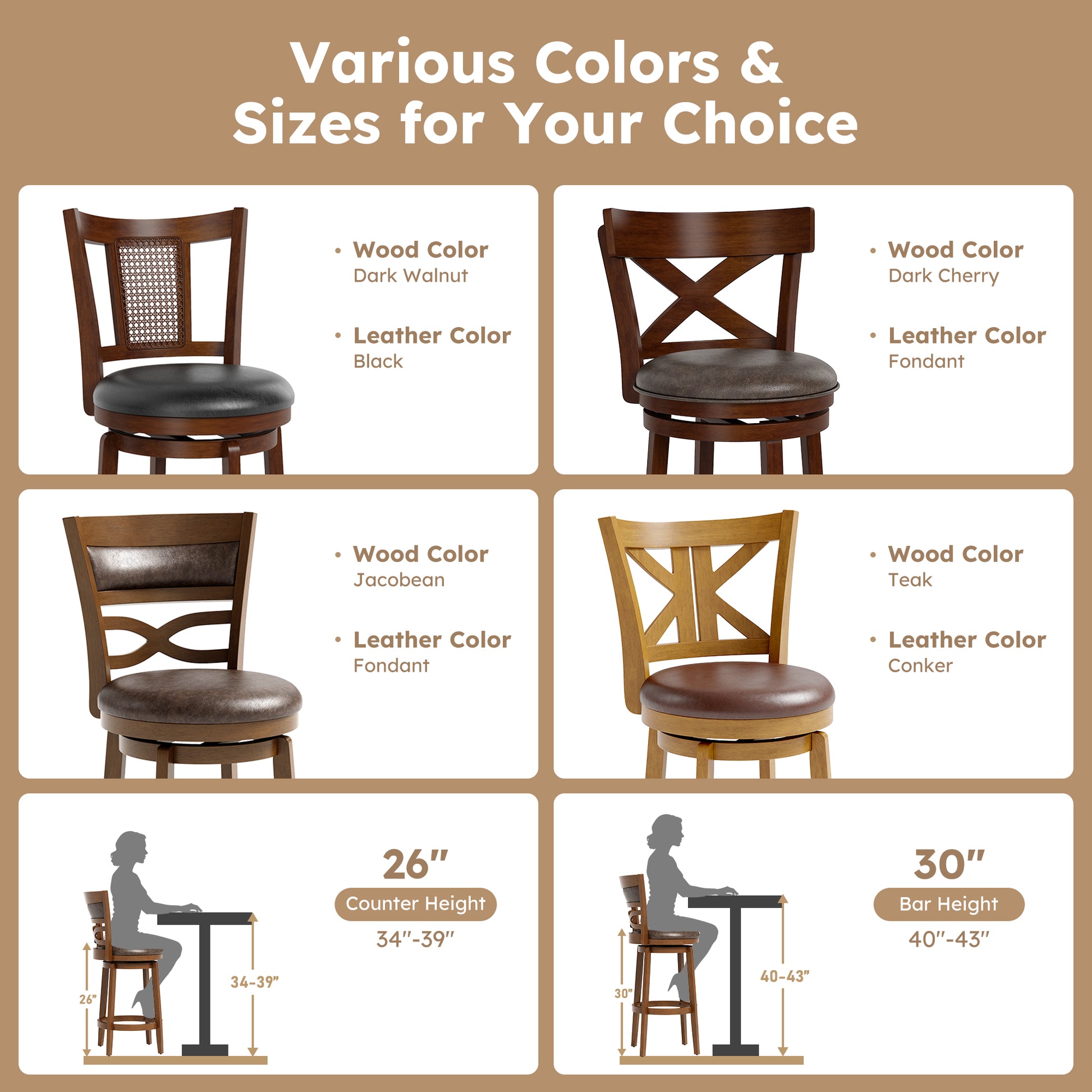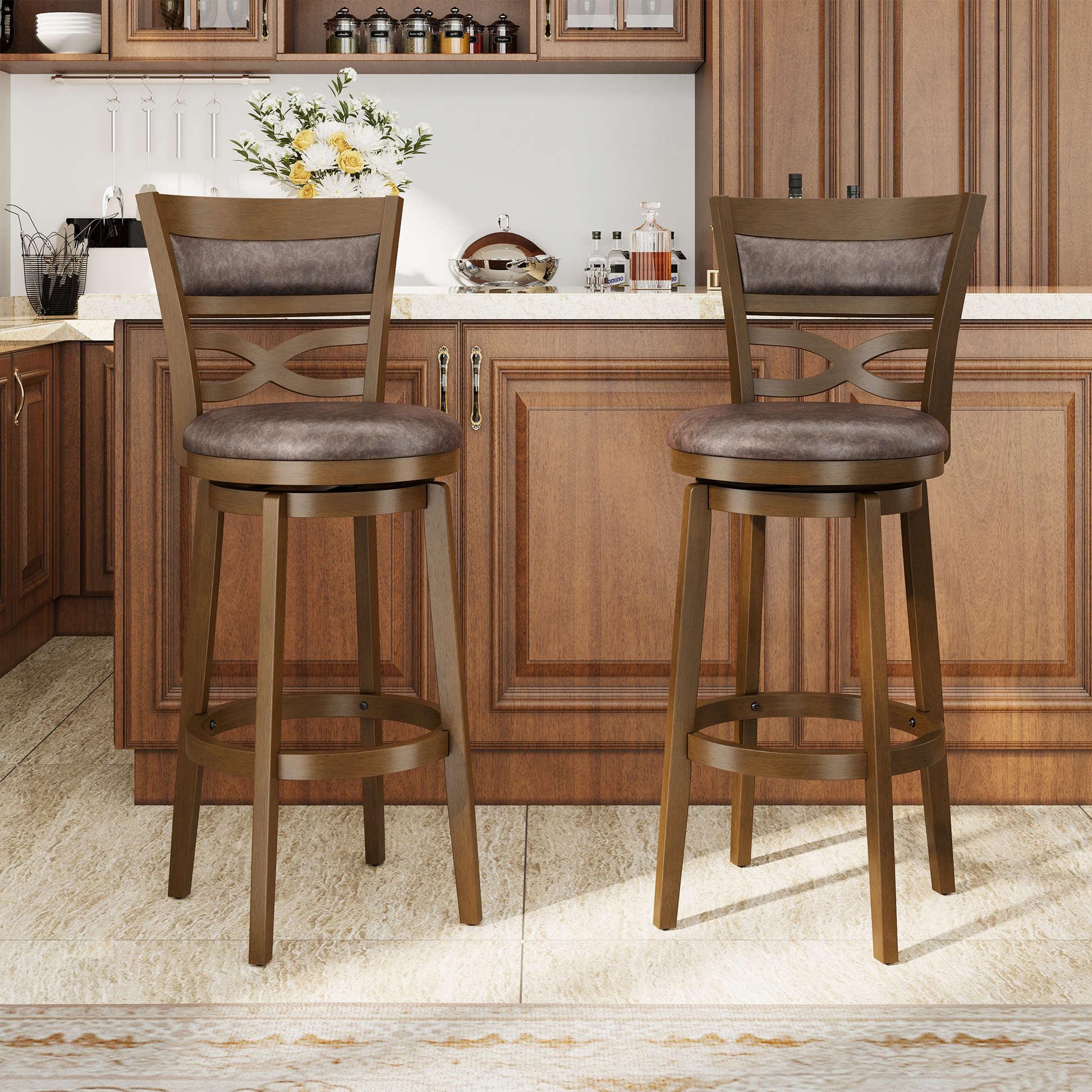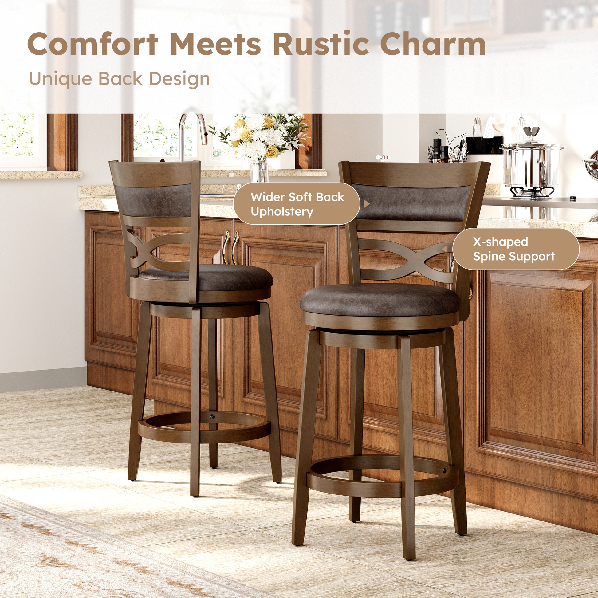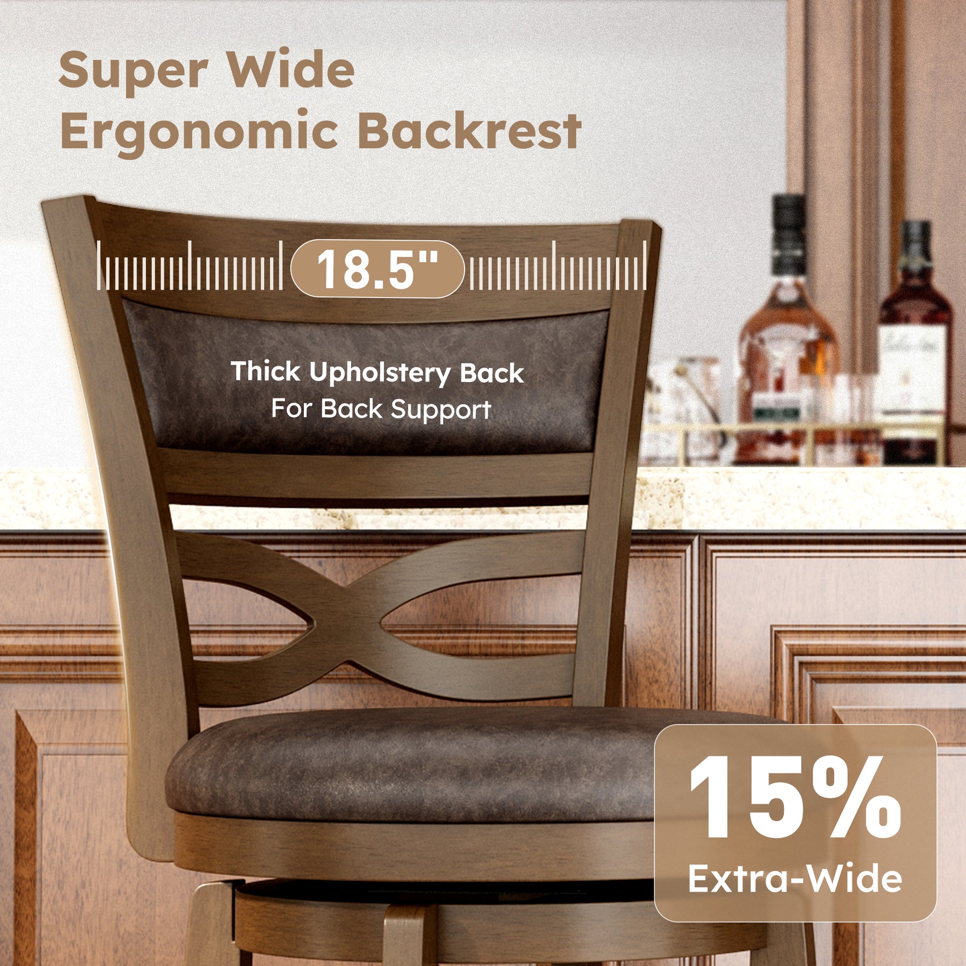 Captiva Designs Counter & Bar Height Swivel Bar Stools with Faux Leather Upholstered Seat & Rubberwood Frame & Wrap-Around Footrest