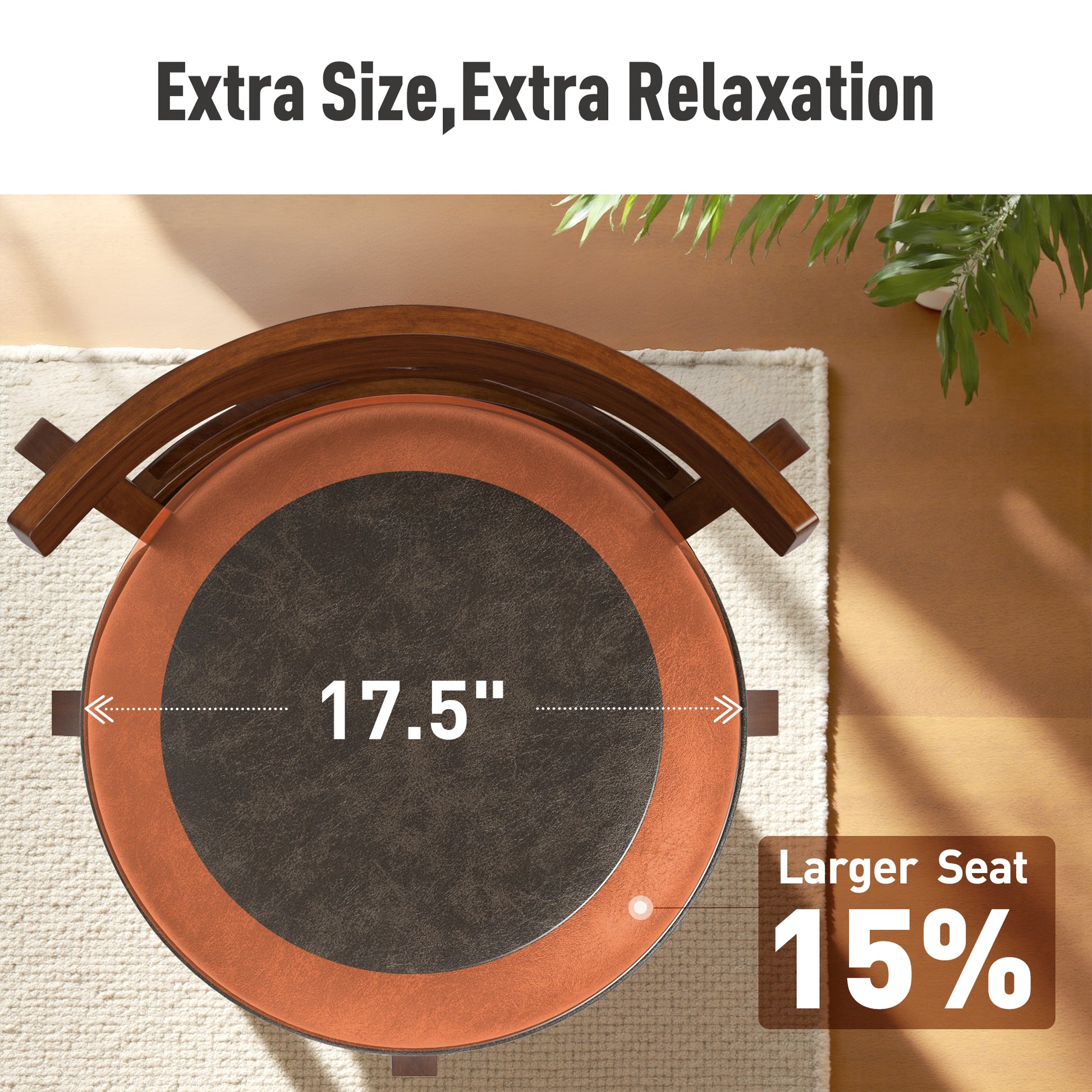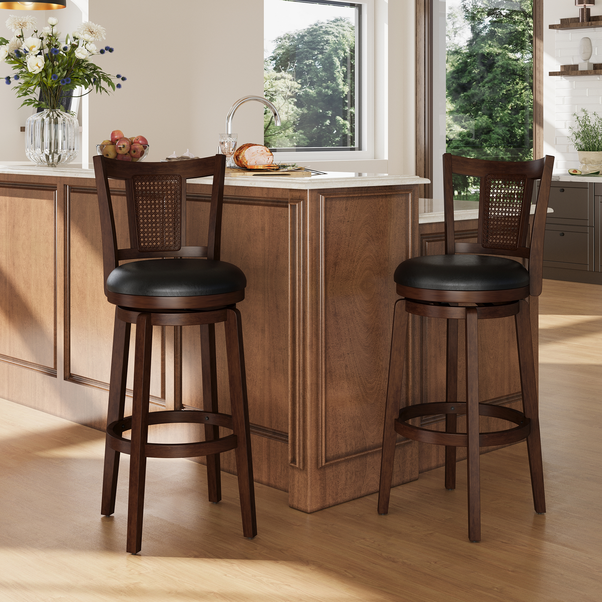 [Captiva Designs] Designed for lasting comfort, these Captiva Designs swivel bar stools feature ergonomic curved backrests and layered cushioning (faux leather with high-resilience sponge) for all-day support. The smooth 360° swivel base adapts effortlessly to conversations or tasks, while the sturdy rubberwood frame (300-lb capacity) ensures durability. Practical details shine with stain-resistant faux leather upholstery and non-slip footrest pads that protect floors. Perfectly proportioned for 38"-42" countertops, these stools combine timeless aesthetic with excellent craftsmanship - an ideal upgrade for kitchens, bars, or cafes where comfort meets daily functionality.