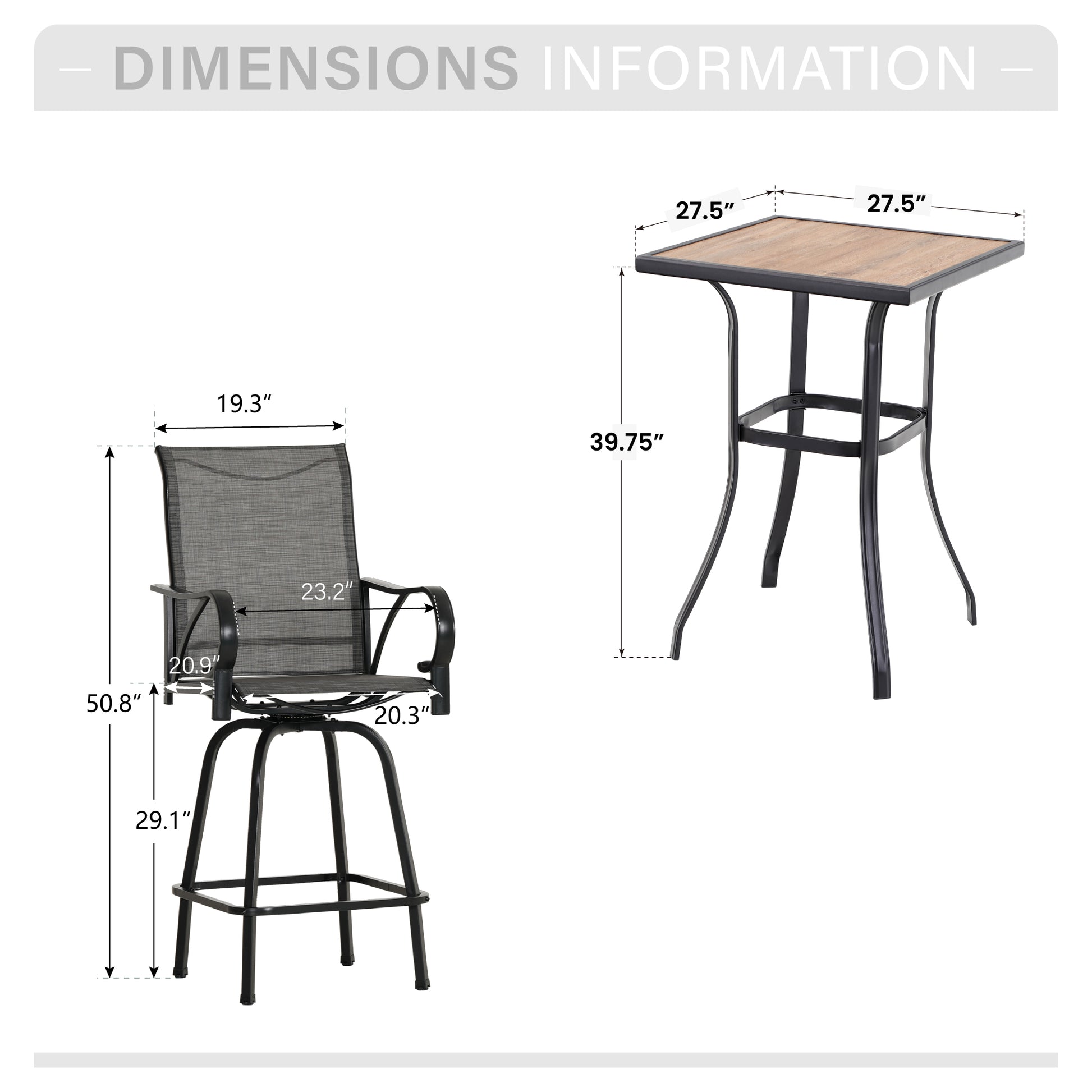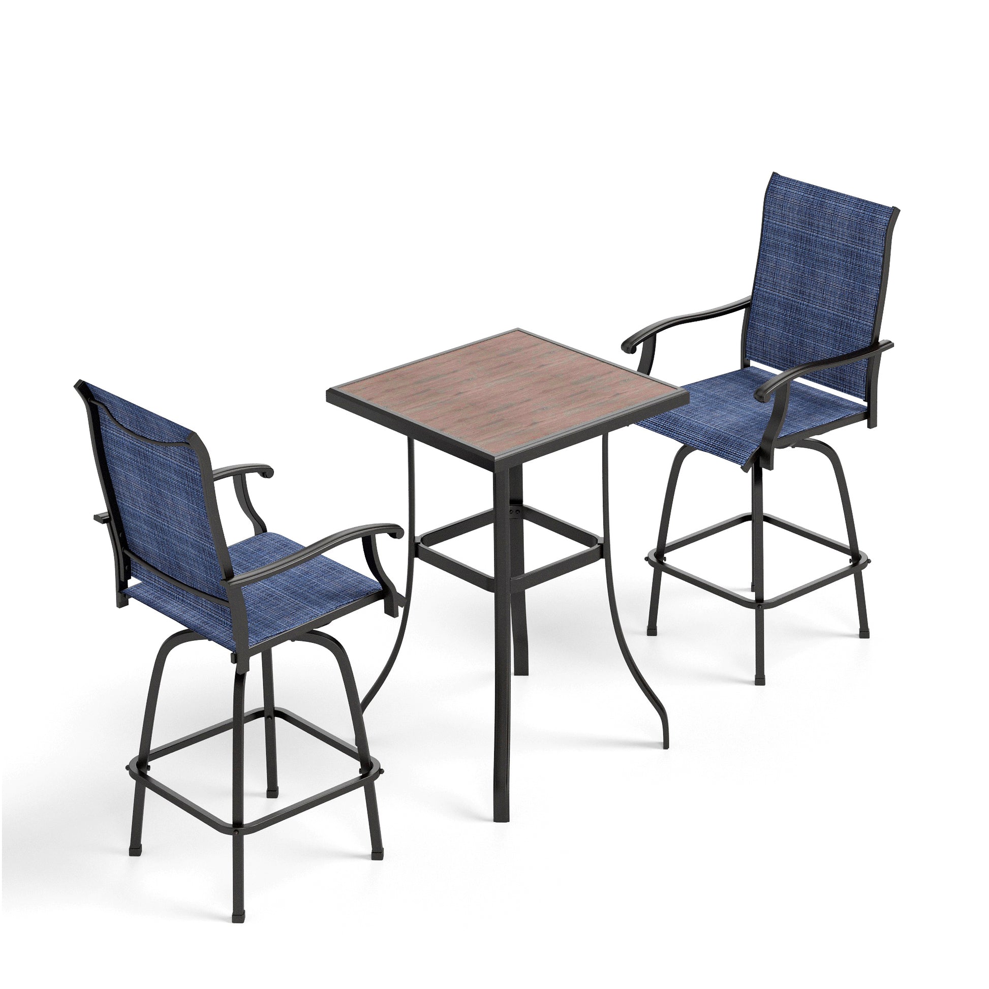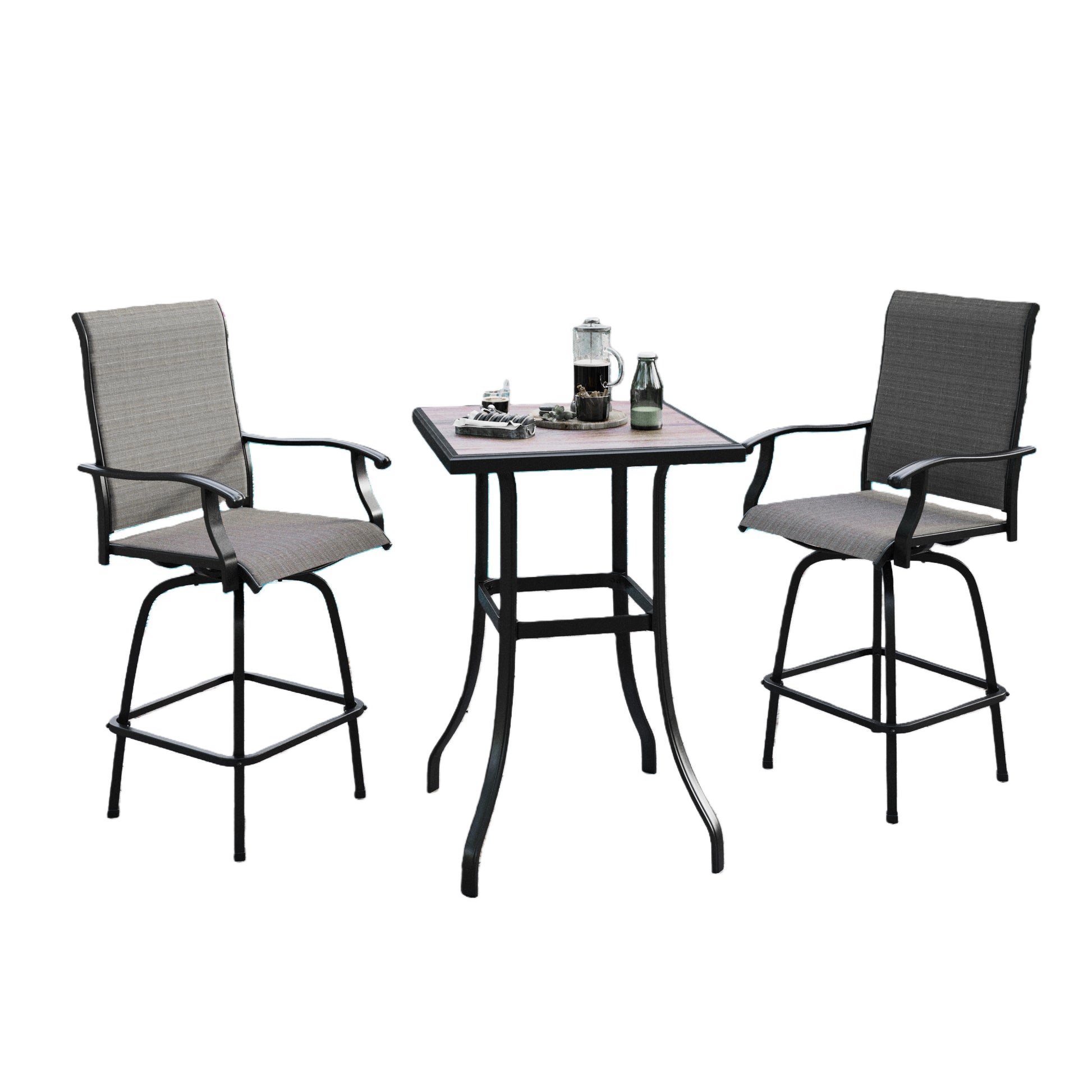 Captiva Designs 3Pc Outdoor Patio Dining Bar Set with Steel Steel Table & Sling Swivel Bar Stools