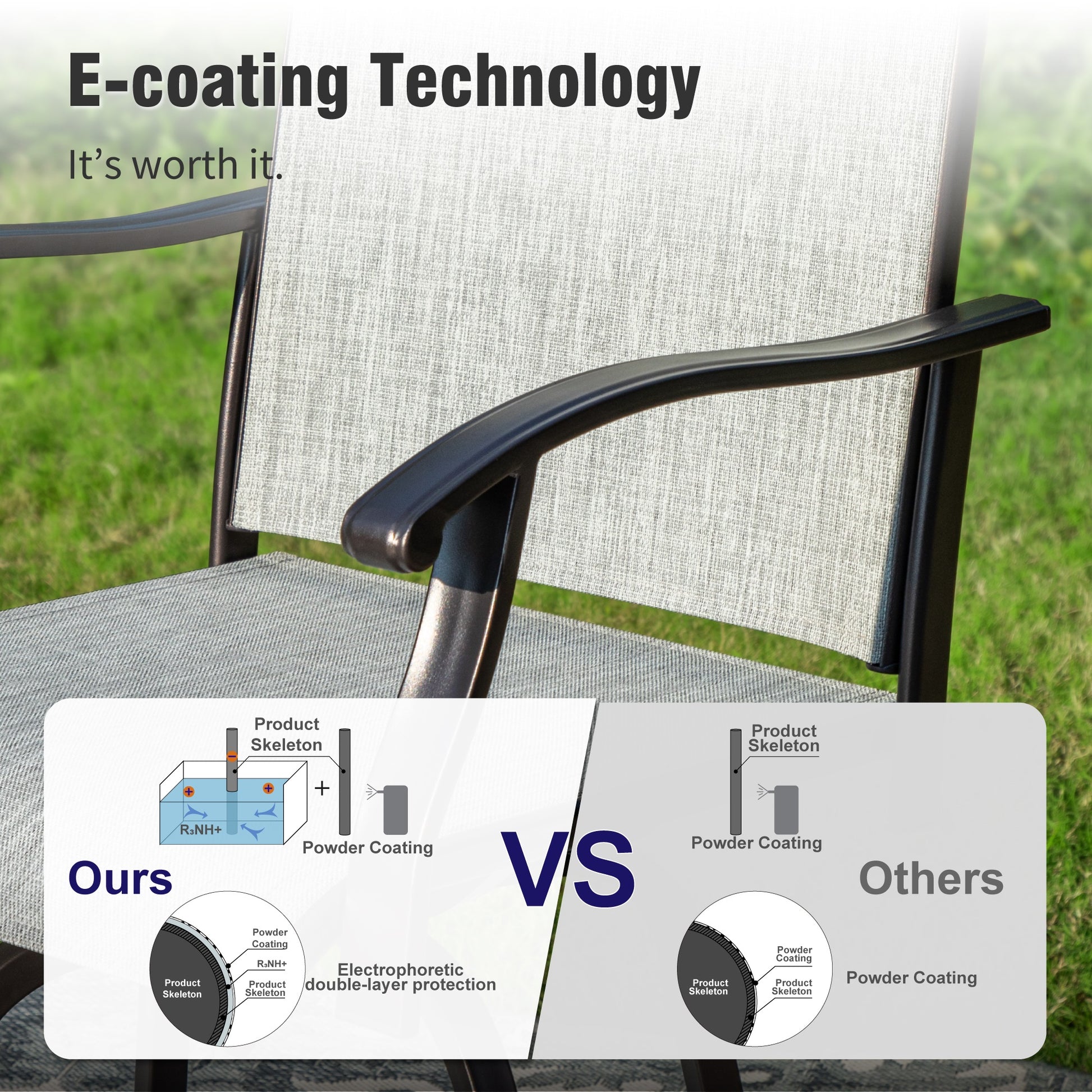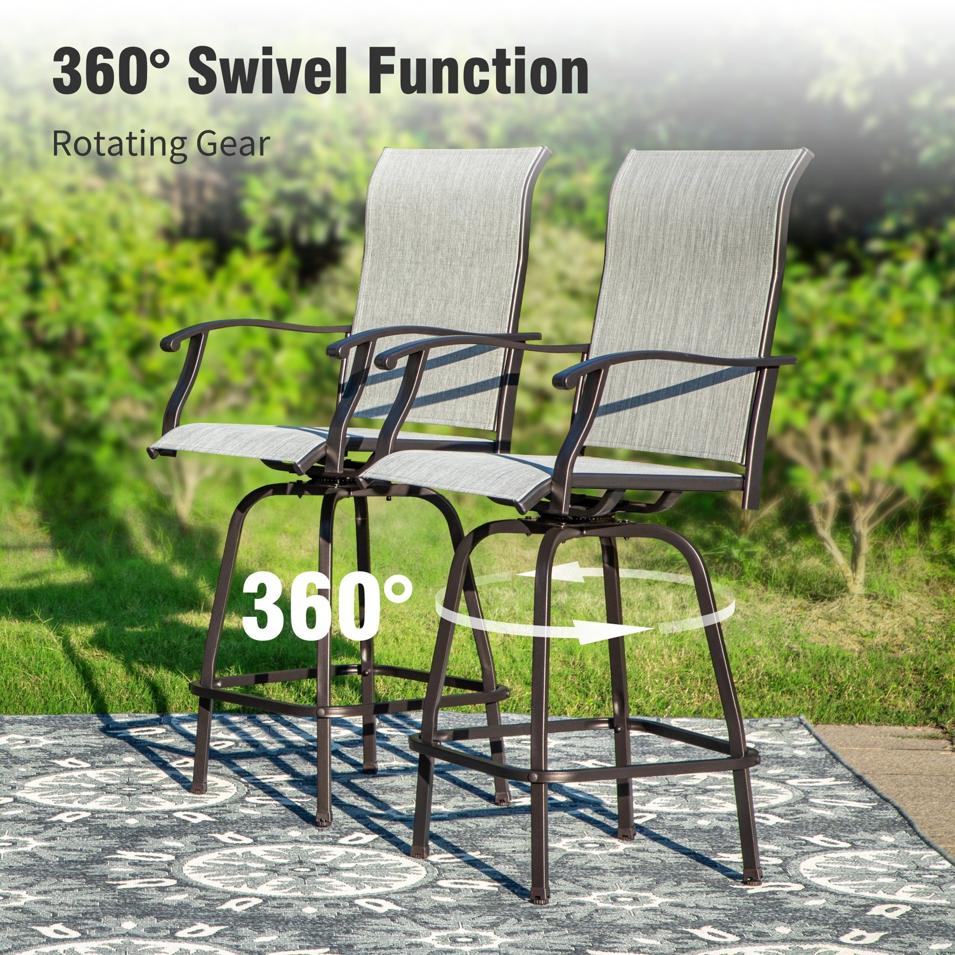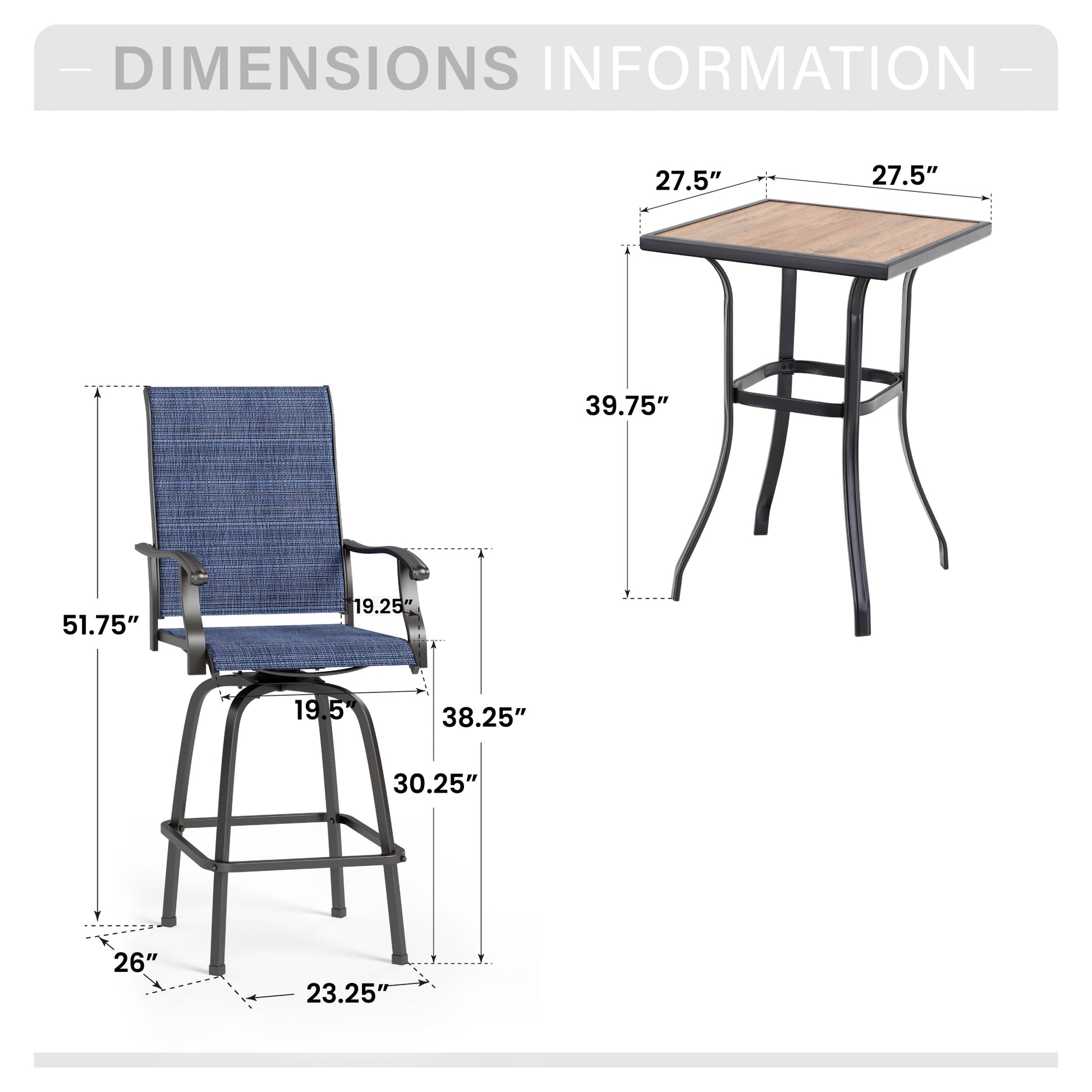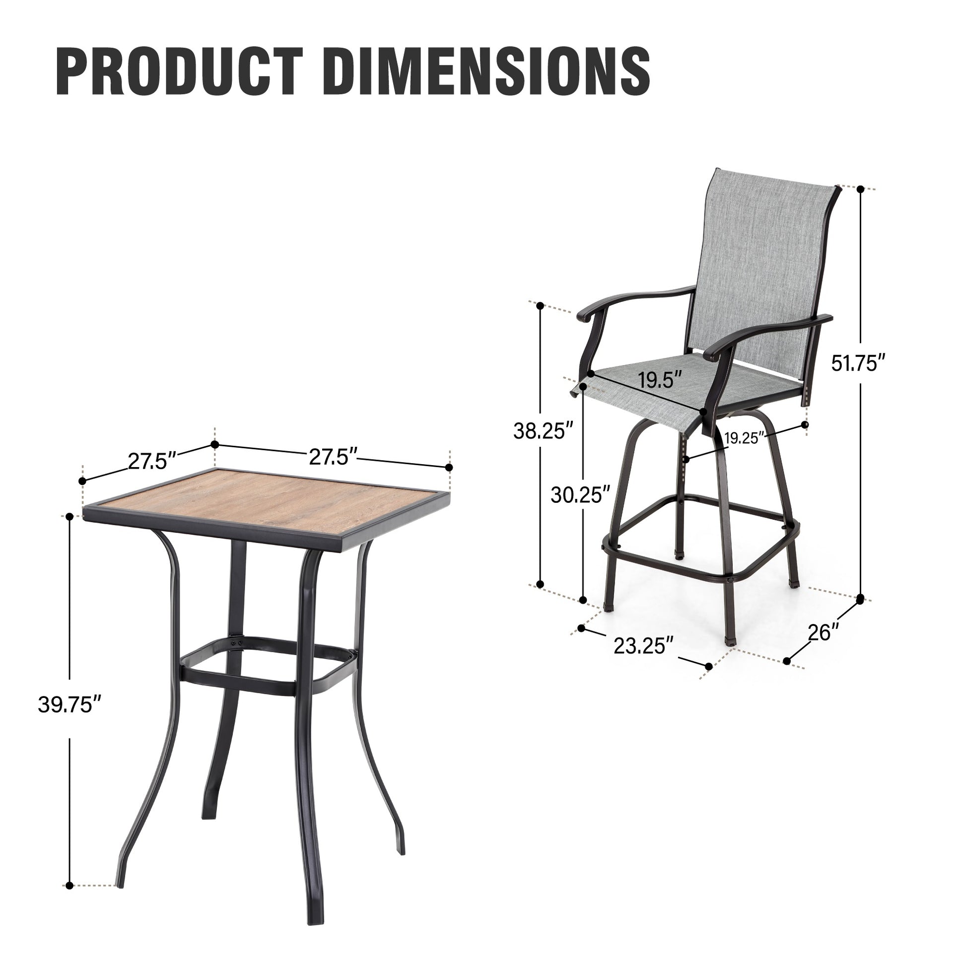 Captiva Designs 3Pc Outdoor Patio Dining Bar Set with Steel Steel Table & Sling Swivel Bar Stools